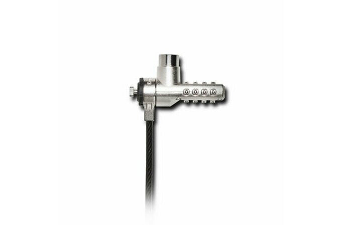 Master Keyed access to open the lock if the combination code is lost or forgotten. Resettable 4-wheel number code with 10,000 possible combinations. Superior strength steel lock head and T-Bar™ to resist tampering. Push-button design for one-handed engagement to easily attach lock. Cut-resistant cable made of carbon steel anchors to desk, table or any fixed structure. Attaches to the Kensington Security Slot™ found on most laptops. Protect your laptop and the confidential data that’s on it with the Master Keyed Combination Laptop Lock. A personal 4-number code can be selected from 10,000 possible combinations. If the code ever gets lost or forgotten, a master key is available to quickly and easily open the lock. The steel lock head is tamper-resistant and features our T-Bar™ Locking Technology, which securely attaches to the Kensington Security Slot™ found on most laptops.. Master Keyed access to open the lock if the combination code is lost or forgotten. Resettable 4-wheel number code with 10,000 possible combinations. Superior strength steel lock head and T-Bar™ to resist tampering. Push-button design for one-handed engagement to easily attach lock. Cut-resistant cable made of carbon steel anchors to desk, table or any fixed structure. Attaches to the Kensington Security Slot™ found on most laptops. Register & Retrieve program to look up lock’s combination code. Features. Country of origin. Taiwan. Cable type. Standard. Security slot anchor type. Standard. Material. Steel. Number of combinations. 10000. Cable lock security features. Master keyed. Cable lock slot type. Kensington. Lock type. Key. Best uses. Laptop. Product colour. Black, Silver. Weight & dimensions. Cable length. 1.8 m. Packaging data. Quantity per pack. 1 pc(s). Technical details. Number of secured items. 1. manual pdf. leaflet