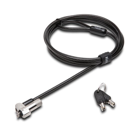 Tough 10mm Lock Head with Cleat™ Locking Technology attaches to the Kensington Nano Security Slot found in select ultra-thin laptops and tablets for uncompromised security. 5mm Keying System is compatible across all of Kensington’s latest locks and includes patented anti-pick Hidden PinTM Technology, all part of our robust custom key management solutions that include Master Keyed (K64445M), Supervisor Keyed (K64445S) and Like Keyed (K64445L) options. Carbon Steel Cable resists and deters cutting attempts. Pivot & Rotate Cable provides superior laptop engagement. Register & Retrieve™ program offers free and secure cloud-based key replacement. Verified & Tested for industry-leading standards in torque/pull, foreign implements, lock lifecycle, corrosion, key strength and other environmental conditions. Limited Lifetime Warranty guaranteed by the leader in laptop locks. Master Access allows both the user and administrators to unlock or reset locks at any time. Designed to fit the Kensington Nano Security Slot, the NanoSaver™ Keyed Laptop Lock secures ultra-thin laptops, tablets, and 2-in-1s with the same quality and strength that has made Kensington The Professionals’ Choice™ for more than 25 years. Developed using strict specifications, patented technologies, and rigorous testing against tough environmental conditions, the NanoSaver Keyed Laptop Lock provides next generation security for ultra-thin devices.. Tough 10mm Lock Head with Cleat™ Locking Technology attaches to the Kensington Nano Security Slot found in select ultra-thin laptops and tablets for uncompromised security. 5mm Keying System is compatible across all of Kensington’s latest locks and includes patented anti-pick Hidden PinTM Technology, all part of our robust custom key management solutions that include Master Keyed (K64445M), Supervisor Keyed (K64445S) and Like Keyed (K64445L) options. Carbon Steel Cable resists and deters cutting attempts. Pivot & Rotate Cable provides superior laptop engagement. Register & Retrieve™ program offers free and secure cloud-based key replacement. Verified & Tested for industry-leading standards in torque/pull, foreign implements, lock lifecycle, corrosion, key strength and other environmental conditions. Limited Lifetime Warranty guaranteed by the leader in laptop locks. Master Access allows both the user and administrators to unlock or reset locks at any time. Features. Locking. Yes. Cable type. Standard. Suitable for. Compatible with HP, Lenovo and other Nano Slot compatible ultrathin devices, computers & notebooks; Notebook. Security slot anchor type. Nano. Material. Carbon steel. Cable lock security features. Master keyed. Lock type. Key. Best uses. Laptop. Product colour. Black. Weight & dimensions. Dimensions (WxDxH). 130 x 20 x 130 mm. Weight. 190 g. Cable diameter. 5 mm. Cable length. 1.8 m. Packaging data. Package dimensions (WxDxH). 165 x 430 x 160 mm. Package weight. 5.56 kg. Package height. 160 mm. Package depth. 430 mm. Package width. 165 mm. Logistics data. Harmonized System (HS) code. 83014090. Technical details. Brand. Kensington. leaflet. manual pdf
