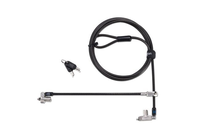 Dual lockheads let you lock two devices with a single solution. Secondary T-bar lockhead fits industry-standard Kensington Security Slot. Plastic sheathing protects surfaces. 5mm keying system is common across all of Kensington’s latest keyed locks, so there’s only one keying system to manage. Slim profile made especially for ultra-thin and 2-in-1 laptops. Tested and approved by Dell. Does not block valuable ports, allowing for full use of laptop’s ports while attached. Won’t raise the laptop off its surface and cause it to wobble, allowing the laptop to lie flat and stable. Kensington locks are verified and tested. Each lock is precision engineered to meet or exceed rigorous industry standards for strength, physical endurance, and mechanical resilience. The omnidirectional pivoting head and rotating anchor are enabled by special hinges that create great freedom of movement, eliminating awkward angles and allowing you to insert your key with complete ease. Register & Retrieve™, Kensington’s online key registration program, allows for quick, secure, and free key replacement if ever lost or stolen. Tested and approved by Dell, the Slim N17 2.0 Keyed Dual Head Laptop Lock for Wedge-Shaped Slots lets you lock two devices with a single solution, won’t block valuable ports, and allows the laptop to lie flat and stable. Secondary T-bar lock head secures peripheral accessories featuring the industry-standard Kensington Security Slot. Meets or exceeds rigorous strength testing standards. Features an omnidirectional pivoting head and rotating anchor, 5mm keying system, and free Register & Retrieve™ key registration and replacement. Five-year warranty. From Kensington, inventor of the laptop cable lock, and industry leader in physical device security for more than 30 years.. Dual Lockheads with 5mm Keying. Lock two devices with a single solution. Secondary T-bar lockhead fits industry-standard Kensington Security Slot. Plastic sheathing protects surfaces. 5mm keying system is common across all of Kensington’s latest keyed locks, so there’s only one keying system to manage.. Slim Profile. Made especially for ultra-thin and 2-in-1 laptops. Tested and approved by Dell.. Does Not Block Valuable Ports. Allows for full use of laptop’s ports.. Allows Laptop to Lie Flat and Stable. Won’t raise the laptop off its surface and cause it to wobble.. Verified and Tested. Each Kensington lock is precision engineered to meet or exceed rigorous industry standards for strength, physical endurance, and mechanical resilience.. Omnidirectional Pivoting Head and Rotating Anchor. Special hinges create great freedom of movement, eliminating awkward angles and allowing you to insert your key with complete ease.. Register & Retrieve™. Kensington’s online key registration program that allows for quick, secure, and free key replacement if ever lost or stolen.. Features. Country of origin. China. Easy to install. Yes. Easy to use. Yes. Keys quantity. 2 keys. Security slot anchor type. Wedge-shaped. Coating. Plastic. Material. Steel. Cable lock security features. T-Bar. Cable lock slot type. Kensington. Lock type. Key. Best uses. Laptop. Product colour. Black, Silver. Weight & dimensions. Weight. 231.4 g. Packaging data. Package weight. 246.6 g. Package height. 18 mm. Package depth. 220 mm. Package width. 335 mm. Manual. Yes. Quantity per pack. 1 pc(s). Logistics data. Master (outer) cases per pallet layer. 25 pc(s). Harmonized System (HS) code. 83014090. manual pdf. leaflet. manual pdf