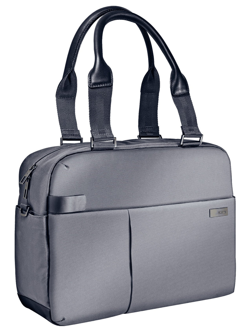 Lightweight, robust polyester for comfortable everyday use. Front compartment allows quick access to your smartphone, passport, pens and business cards. 19 pockets, including quick access front pocket for your mini tablet or ebook reader. Smart features including cleaning cloth, key holder and removable pouch for your power adapter and cables. Detachable and adjustable shoulder belt. Convenient see-through mesh pockets for cables and small accessories. Padded tablet and ultrabook pocket with soft fleece lining to protect device screen and surfaces. Secret phone pocket on the back side for user-friendly earphone connection and better notice of vibration alarm in crowded areas. Quality lightweight and spacious business bag with one main compartment and smaller front compartment. Distinctive and elegant design with smart zip fastener with elegant matt metal buckles. Carry using genuine leather padded shoulder straps, adjustable shoulder belt, or fix on your airport trolley.. Features. Quantity. 1. Shoulder strap. Yes. Removable shoulder strap. Yes. Carrying handle(s). Yes. Front pocket. Yes. Interior pockets. Cell phone pocket. Tablet compartment. Yes. Integrated compartment(s). Yes. Brand compatibility. Any brand. Product main colour. Black, Silver. Interior material. Fleece. Material. Leather, Metal, Polyester. Case type. Briefcase. Maximum screen size. 33.8 cm (13.3"). Surface coloration. Monochromatic. Weight & dimensions. Volume. 15.5 L. Weight. 750 g. Height. 290 mm. Depth. 160 mm. Width. 380 mm. Other features. Minimum screen size. 33.8 cm (13.3"). Leitz Complete 13.3" Shopper Bag Smart Traveller - EN