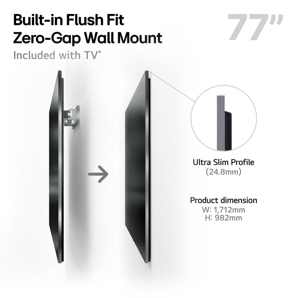 Powerful α11 AI processor, designed and exclusive to LG OLED, for unmatched picture and sound. AI picture and Sound Pro for the ultimate entertainment experience. Brightness Booster Ultimate – for stunning images in any environment. Perfect Black – self-lit pixels provide infinite contrast. One Wall Design - ultra slim with built-in flush fit wall mount and narrow bezels. Advanced OLED processor for optimised pictures and sound. Exclusive to select LG OLED TVs including the G5, the incredible α11 AI Processor is tailored for OLED technology, delivering unmatched picture and sound quality. This is the most advanced processor ever made for an LG TV, intuitively delivering image enhancement through AI Super Upscaling and emotional precision through AI Director Processing. It will also upscale audio for a more cinematic experience, whilst also ensuring every word is clear through AI Voice Remastering.. Brightness Booster Ultimate. LG OLED G5 features Brightness Booster Ultimate - consisting of an advanced Light Boosting Algorithm plus Light Control Architecture – which enables stunningly bright images (up to 3 times brighter than conventional OLED*) ensuring a stunning picture no matter how bright or dark your room.. *3 times brightness increase not applicable to 97/48” sizes.. Perfect Black. LG self-lit OLED is the pinnacle of TV technology. All of the screen's pixels are self-lit allowing for perfect contrast, 100% colour accuracy and volume, and the sharpest pixel-perfect details, creating the ultimate viewing experience. With a certified perfect black, you will never again lose out on important detail in the dark scenes of a movie – regardless of whether you’re viewing at night, or during the day.. Additionally, LG OLED enables uncompromised picture quality at any viewing angle so everyone in the room can enjoy the same stunning images regardless of where they sit. OLED technology also provides a safer and more comfortable viewing experience thanks to its flicker-free technology and certified low blue light levels. This means less fatigue to your eyes during boxset marathons, nail-biting championship games and intense gaming sessions.. Smart webOS Platform. LG OLED G5 features webOS, LG's smart platform which hosts a huge variety of the best streaming services, while making browsing and searching for what to watch completely hassle-free. The smart platform is controlled with the LG AI Magic Remote, and opens up a world of information and assistance through a variety of AI-driven services. These include the AI Chatbot - which can help you to change the image or sound to your liking simply by asking, Voice ID – which can recognise different users and provide personalised recommendations, and much more.. What’s more, with LG’s webOS Re:new program, you’ll enjoy upgrades to the latest version for five years*.. *Customers will receive 4 upgrades over time, starting from the launch version.. One Wall Design - Flush fit and ultra slim. LG OLED G5’s class-leading One Wall design offers an ultra slim profile and built-in flush fit wall mount providing understated elegance to any space, merging seamlessly into your environment while making a bold statement and powerful focal point.. (Wall-mount included. Stand available to purchase separately).. OLED Care +. LG has spent over 10 years perfecting the art of OLED TV, and this is exemplified with the 5 year extended panel warranty and advanced OLED Care Technology which ensures you will enjoy optimal performance for years to come.. Extraordinary Cinema experience. LG OLED G5 delivers the ultimate at-home cinema experience. Laser sharp pictures, crystal-clear sound and perfect black levels. Dolby Vision and Filmmaker Mode now work together, providing film experiences with incredible colour and contrast – and looking exactly how the director intended. Dolby Atmos injects awe-inspiring drama to every genre - with 3D surround sound delivering the ultimate in full audio immersion.. Ultimate Gaming experience. LG OLED G5 unleashes the full potential of next generation consoles and heightens your gaming skill. Boost your competitive edge with features such as 4K@165Hz*, VRR, ALLM and eARC as specified in HDMI 2.1, and an incredible 0.1ms response time plus low input lag. LG OLED G5 comes loaded with FreeSync, G-Sync, HGiG and Game Optimiser features as well as easy access to Twitch on LG’s webOS smart platform.. *165Hz not applicable to 97/48” sizes.. Hyper-real sport experience. LG OLED delivers you the realism and intensity of the sports stadium experience at home, with uncompromised picture quality at any viewing angle regardless of where you are sitting. Exceptional picture quality with immersive sound (AI sound Pro) is enhanced by the smoothest motion (OLED Motion) so no matter how intense the action is, OLED keeps every detail of the game in diamond sharp focus.. LG Soundbar synergy. Pair with a compatible LG Soundbar to enjoy a seamless, connected experience with enhanced sound. WOW Orchestra utilises TV and Soundbar speakers simultaneously for an optimised experience. WOW Interface takes the hassle out of tuning your audio, using Soundbar mode controls and super-accessible TV remote and on-screen menus.. *Compatible with select LG soundbars. Display. Motion interpolation technology. OLED Motion. Native refresh rate. 120 Hz. Response time. 0.1 ms. Native aspect ratio. 16:9. Screen shape. Flat. Display technology. OLED evo. Display resolution. 3840 x 2160 pixels. HD type. 4K Ultra HD. Display diagonal. 195.6 cm (77"). TV tuner. Digital signal format system. DVB-T, DVB-T2. Analog signal format system. PAL. Tuner type. Analog & digital. Smart TV. Video apps. Amazon Prime Video, Apple TV, Chili, DAZN, Disney+, NOW TV, Netflix, Paramount+, Rakuten TV, Twitch, YouTube. Music apps. Amazon Music, Apple Music, Deezer, Spotify, Tidal. Far-field voice interaction. Yes. Hybrid Broadcast Broadband TV (HbbTV). Yes. Apple AirPlay 2 sup