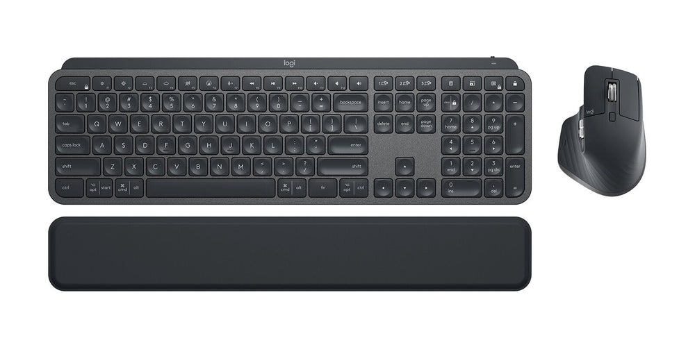 Enterprise Secure: Logi Bolt is designed to meet enterprise security concerns with fully encrypted, Secured Connections Only mode wireless security. Easy To Deploy and Manage: Certified and available in over 100 countries with support for IT pros and business users, both Bluetooth keyboard and mouse are Mac/Windows/ChromeOS/Linux compatible. Cordless keyboard’s keys automatically adjust to the environment and turn off when not needed resulting in optimal battery consumption. The full size keyboard’s Perfect Stroke scissor keys are spherically-dished to match fingertip shape for key stability and tactile reference for hand positioning. The wireless mouse works on any surface and helps hit the right pixel every time with the Darkfield 8000 DPI laser sensor; track with incredible precision—even on glass. With MagSpeed Scrolling, the MX Master 3S zips down 1000 lines of code or spreadsheet cells in just a second and gets line-by-line pixel-by-pixel precision. Quiet Click technology makes this quiet mouse ideal for open-plan work areas, reducing click noise by 90% for less distraction and better focus. Mouse - Quiet Click technology makes open work areas better for everyone, reducing click noise by 90% for less distraction and better focus. Our top-of-the-line combo is now paired for even greater performance. The improved MX Master 3S mouse’s Quiet Click technology makes 90% less distracting click noise and its 8000 DPI optical sensor offers precision tracking on high-resolution monitors. The full-size, auto backlit keyboard integrates a metal plate for stability. With the MX Palm Rest as the perfect companion for all-day comfort. The Perfect Stroke keys are spherically dished, matching fingertip shape, for a natural keystroke. The mouse’s shape fits the hand perfectly. This combo addresses increasing IT security needs with Logi Bolt technology for secure, robust connections even in congested wireless environments. And it’s pre-paired to both devices for easy deployment and management. The mouse’s ingenious MagSpeed™ wheel is our fastest and most precise scrolling experience—this duo is ready for any job.. Keyboard. Bluetooth Low Energy (BLE). Yes. Silent keys. Yes. Hot keys. Yes. Multi-device support. Yes. Keyboard key profile. Low-profile. Numeric keypad. Yes. Keyboard form factor. Full-size (100%). Pointing device. No. Keyboard language. UK International. Keyboard layout. QWERTY. Keyboard key switch. Scissor key switch. Device interface. RF Wireless + Bluetooth. Connectivity technology. Wireless. Recommended usage. Office. Design. Surface coloration. Monochromatic. Product colour. Graphite. Wrist rest. Yes. Keyboard style. Straight. Adjustable backlight. Yes. Backlight colour. White. Backlight type. LED. Backlight. Yes. Features. Cable length. 1.3 m. Wireless range. 10 m. Power. Charging source. USB Type-C. Rechargeable. Yes. Battery capacity. 1500 mAh. Battery technology. Lithium Polymer (LiPo). Keyboard battery type. Built-in battery. Power source type. Battery. Mouse. Number of scroll wheels. 2. Mouse on/off switch. Yes. Mouse battery type. Built-in battery. Hyper-fast scrolling. Yes. Scrolling directions. Vertical/Horizontal. Tilting scroll. Yes. Scroll type. Wheel. Scroll. Yes. Buttons type. Pressed buttons. Movement resolution. 8000 DPI. Movement detection technology. Laser. Form factor. Right-hand. Mouse included. Yes. System requirements. Other operating systems supported. ChromeOS. Mobile operating systems supported. Android 10.0, Android 11.0, Android 12.0, Android 8.0, Android 9.0, iOS 14, iOS 14.5, iOS 15, iPadOS. Linux operating systems supported. Yes. Mac operating systems supported. Mac OS X 11.0 Big Sur, Mac OS X 12.0 Monterey. Windows operating systems supported. Windows 10, Windows 11. Weight & dimensions. Mouse weight. 141 g. Keyboard weight. 810 g. Packaging data. Package type. Box. Package weight. 1.56 kg. Package height. 58 mm. Package depth. 138.5 mm. Package width. 173.5 mm. Packaging content. User guide. Yes. Receiver type. Nano receiver. Wireless receiver interface. USB Type-A. Receiver included. Yes. Number of products included. 3 pc(s). Other features. Compatibility. Logi Bolt USB Receiver. MX Master 3S for Business