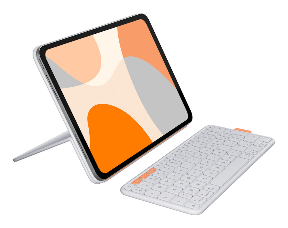 Folio 27.9 cm (11") Grey. Stand mode. Bump resistant, Scratch resistant. Built-in keyboard. 465 g. Flip into fun. Or focus. Detach the Bluetooth keyboard and place it anywhere. Then snap it back onto the case magnetically to stow it away. Adjust the kickstand to find the right angle, and position iPad in landscape or portrait modes.. Flip into joy.. Calling all wanderers—the time for joy is now. Flip Folio is designed to make your iPad both fun and functional, so you can stay focused on what matters, from wherever you are.. Type away or stow away. Use it, move it, or stow it away. The Bluetooth keyboard allows you to position your setup exactly how you want, while enjoying typing on a full-sized keyboard in a compact design. For easy storage, magnetically snap it on the iPad case.. Keep iPad protected. Flip Folio allows you to take iPad just about anywhere, offering front and back protection, keeping your iPad safe from bumps and scratches.. Pair your favorite devices. Pair up to three of your favorite Bluetooth® devices to flip into focus. Easy-switch keys let you flip between them seamlessly.. Flip landscape to portrait. Watch in landscape or flip to portrait. Whether you’re viewing, reading, doodling, or chatting with a friend, Flip Folio lets you position iPad just how you like it.. Flex your angle. The flexible kickstand lets you find the perfect angle for viewing or typing, all with a compact footprint.. Favorite shortcuts. Access preferred functions like screen capture and media controls quickly and easily with a full row of iOS shortcut keys.. Power to roam. Flip Folio is powered by four replaceable coin cell batteries that last up to 2 years* so you can roam free without worry. When you attach the keyboard to the case, the keyboard automatically shuts off to help preserve battery life. (*Battery life based on 2 hours daily use but may vary based on user and computing conditions.). Features. Protection features. Bump resistant, Scratch resistant. Keyboard layout. QWERTY. Built-in keyboard. Yes. Stand mode. Yes. Compatibility. iPad Pro 11-inch (M4), iPad Air 11-inch (M2 & M3), iPad Air (5th gen). Brand compatibility. Apple. Product main colour. Grey. Case type. Folio. Maximum screen size. 27.9 cm (11"). Battery. Built-in battery. No. Weight & dimensions. Weight. 465 g. Height. 253 mm. Depth. 204 mm. Width. 181 mm. Technical details. Warranty period. 2 year(s). Recycled package material. Yes. Recycled materials used for making. Recycled plastic. Made with recycled materials. Yes. Logitech Flip Folio for iPad Pro and iPad Air | Flip into the features | 33s All colors. Logitech Flip Folio for iPad - Flexibility meets function