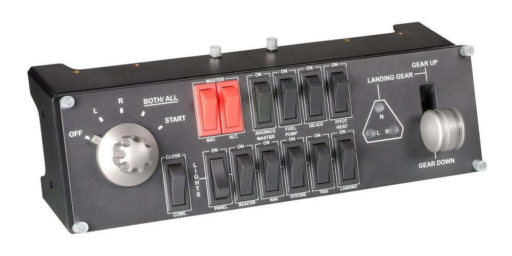 Multiple in-cockpit controls give you the next step to replicating the functionality of an actual aircraft in your flight simulation setup.. Realistic landing gear control with LED indicators – nothing beats the satisfying click of an actual control lever. And with LED indication of any potential faults with your aircraft, you’ll know if it’s safe to touch down. The 5-position magneto dial ignites engines so that, just as with the landing gear lever, you turn a dial like the one in a real aircraft to start your engines and get your flight under way.. Modular and interchangeable, Saitek's range of instrument panels can be stacked one on top of another or placed side by side in your preferred configuration. Upgrade your cockpit one piece at a time until you have every instrument display that you need for your virtual aircraft of choice.. Saitek's Pro Flight Switch Panel is ideal for expanding the number of controls in your flight simulator setup. Attach it to your Saitek Pro Flight Yoke, place it atop your desk, or even mount it to your own custom cockpit setup. Control your landing gear and lights, engine power and other important aircraft functions, all from one compact unit.. Modular and interchangeable, Saitek's range of Instrument Panels can be situated one on top of another or side-by-side. Want the Multi Panel above the Radio Panel? Done. Want your Switch Panel to the left of your Yoke? Go for it. Easy-to-use mounting brackets provide the means to arrange your flight simulation setup in a configuration only limited by your imagination.. Input device. Gaming control technology. Analogue / Digital. Gaming platforms supported. PC. Device type. Flight Sim. Ports & interfaces. Device interface. USB. Connectivity technology. Wired. Ergonomics. Product colour. Black. Power. Power source. Cable. Software. Windows operating systems supported. Yes. Weight & dimensions. Weight. 500 g. Height. 95 mm. Depth. 105 mm. Width. 285 mm. Packaging data. Package weight. 918 g. Package height. 119 mm. Package depth. 321 mm. Package width. 144 mm. Packaging content. Batteries included. No. Logistics data. Master (outer) case gross weight. 4 kg. Master (outer) case height. 262 mm. Master (outer) case length. 338 mm. Master (outer) case width. 309 mm. Harmonized System (HS) code. 95049080. manual pdf
