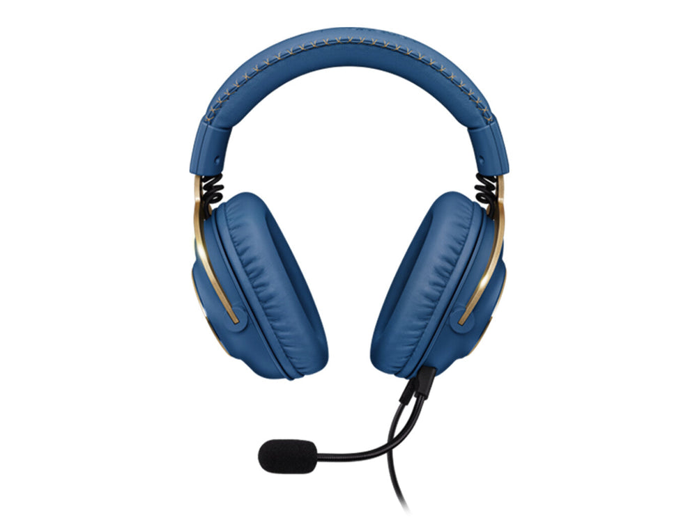 BLUE VO!CE MICROPHONE FILTERS. PRO-G 50 MM PRECISION DRIVERS. PRO-TUNED EQ PROFILES. Performance. Sound pressure level (max). 91.7 dB. Virtual surround technology. DTS Headphone:X 2.0. Virtual surround. Yes. Detachable cable. Yes. Cable length. 2 m. Product colour. Blue, Gold. Headset type. Binaural. Recommended usage. Gaming. Wearing style. Head-band. Product type. Headset. Ports & interfaces. USB connectivity. Yes. 3.5 mm connector. Yes. Connectivity technology. Wired. Headphones. Noise canceling type. Passive. Driver unit. 5 cm. Magnet type. Neodymium. Impedance. 35 Ω. Headphone frequency. 20 - 20000 Hz. Ear coupling. Circumaural. Microphone. Microphone noise-canceling. Yes. Microphone direction type. Unidirectional/Cardioid. Detachable microphone. Yes. Microphone frequency. 100 - 10000 Hz. Microphone type. Boom. System requirements. Windows operating systems supported. Windows 10, Windows 11, Windows 7. Weight & dimensions. Weight. 320 g. Height. 195 mm. Depth. 94 mm. Width. 138 mm. Packaging data. Package weight. 867 g. Package height. 242.5 mm. Package depth. 232 mm. Package width. 106.5 mm. Packaging content. Quantity. 1. Ear pad material. Leatherette. Ear pads. Yes. Pouch. Yes. Accessories included in set. DAC converter. Cables included. Audio (3.5mm). Audio adapters included. 2 x 3.5 mm. Logistics data. Master (outer) case gross weight. 4.05 kg. Master (outer) case height. 261 mm. Master (outer) case length. 443 mm. Master (outer) case width. 243 mm. Harmonized System (HS) code. 85183000. Supplier features. Material. Aluminium, Foam, Leatherette, Steel. Other features. Packaging content. PRO gaming headsetMemory foam leatherette ear padsMemory foam cloth ear padsUSB External sound cardDetachable mic2 m PC cable with inline volume and mute1.5 m mobile cable with buttonY-splitter for separate mic and headphone portsCarrying bagUser documentation. Dolby technologies. 7.1 Surround Sound. Capsule diameter. 6 mm. User guide. Yes. Audio output channels. 7.1 channels. Introducing the PRO X Gaming Headset League of Legends Edition