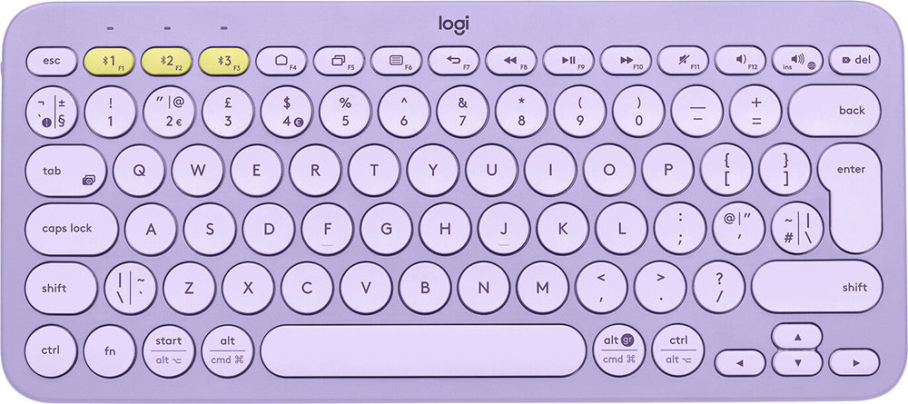 Universal. Bluetooth. QWERTY UK English. Mini. Lavender. 1 pc(s). Keyboard. On/off switch. Yes. Bluetooth version. 3.0. Hot keys. Yes. Multi-device support. Yes. Keyboard key profile. Low-profile. Numeric keypad. No. Keyboard form factor. Mini. Pointing device. No. Keyboard language. UK English. Keyboard layout. QWERTY. Device interface. Bluetooth. Connectivity technology. Wireless. Recommended usage. Universal. Design. Battery LED indicator. Yes. LED indicators. Battery, Bluetooth. Surface coloration. Monochromatic. Product colour. Lavender. Keyboard style. Straight. Backlight. No. Features. Wireless range. 10 m. Power. Service life of battery. 24 month(s). Battery capacity. 1000 mAh. Battery technology. Alkaline. Number of batteries (keyboard). 2. Keyboard battery type. AAA. Power source type. Battery. Mouse. Mouse included. No. System requirements. Other operating systems supported. ChromeOS. Mobile operating systems supported. iOS. Mac operating systems supported. MacOS. Windows operating systems supported. Yes. Software. Downloadable software. Logi Options+. Weight & dimensions. Keyboard weight. 423 g. Keyboard dimensions (WxDxH). 279.5 x 124.2 x 16.4 mm. Packaging data. Package weight. 540 g. Package height. 32 mm. Package depth. 296 mm. Package width. 136 mm. Packaging content. Packaging content. Keyboard2 AAA batteries (pre-installed)User documentation. User guide. Yes. Batteries included. Yes. Receiver weight. 1.8 g. Receiver dimensions (WxDxH). 18.7 x 6.1 x 14.4 mm. Number of products included. 1 pc(s). Other features. Warranty period. 2 year(s). Logistics data. Master (outer) case gross weight. 4.56 kg. Master (outer) case height. 287 mm. Master (outer) case length. 305 mm. Master (outer) case width. 136 mm. Own Your Space K380 and Pebble Lavender and Lemonade and Sand Hero