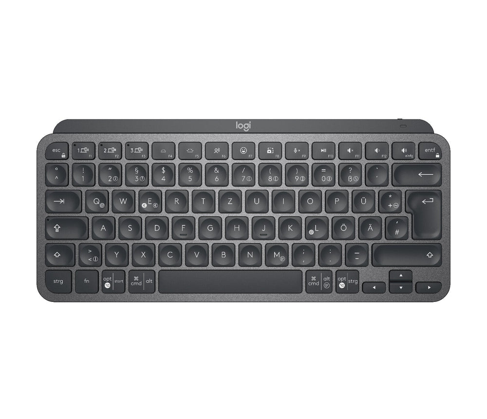 Perfect Stroke keys shaped for your fingertips. Smart keys- Dictation, Emoji, and more. Minimalist design for better ergonomics. Backlighting automatically adjusts to environment. Multi device, Multi OS. USB-C Rechargeable. Keyboard. On/off switch. Yes. Bluetooth Low Energy (BLE). Yes. Multimedia keys. Yes. Hot keys. Yes. Multi-device support. Yes. Numeric keypad. No. Keyboard form factor. Mini. Pointing device. No. Keyboard language. German. Keyboard layout. QWERTZ. Device interface. RF Wireless + Bluetooth. Connectivity technology. Wireless. Recommended usage. Office. Design. LED indicators. Yes. Surface coloration. Monochromatic. Product colour. Graphite. Keyboard style. Straight. Adjustable backlight. Yes. Backlight type. LED. Backlight. Yes. Features. Wireless range. 10 m. Power. Number of batteries supported. 1. Charging source. USB Type-C. Rechargeable. Yes. Battery capacity. 1130 mAh. Battery technology. Lithium Polymer (LiPo). Keyboard battery type. Built-in battery. Power source type. Battery. Mouse. Mouse included. No. System requirements. Other operating systems supported. ChromeOS. Mobile operating systems supported. iPadOS, Android. Linux operating systems supported. Yes. Mac operating systems supported. Yes. Windows operating systems supported. Windows 10, Windows 11. General. Product family. Master. Weight & dimensions. Keyboard weight. 506.4 g. Keyboard dimensions (WxDxH). 295 x 131.95 x 20.97 mm. Packaging data. Package weight. 700 g. Package height. 38 mm. Package depth. 315 mm. Package width. 140 mm. Packaging content. User guide. Yes. Cables included. USB Type-C. Number of products included. 1 pc(s). Other features. Compatibility. Logi Bolt USB Receiver. Logistics data. Master (outer) case gross weight. 3 kg. Master (outer) case height. 155.4 mm. Master (outer) case length. 324 mm. Master (outer) case width. 161.4 mm. Harmonized System (HS) code. 84716060. Logi MX Keys Mini Master. Logi MX Keys Mini Master. Logi MX Keys Mini Master. Logi MX Keys Mini Master