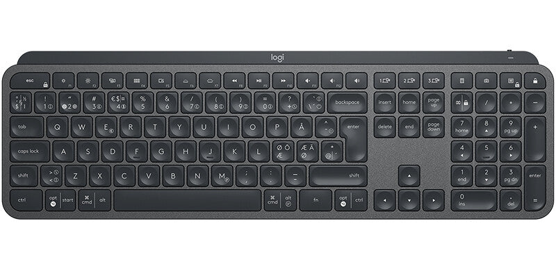 PERFECT-STROKE KEYS – Spherically dished keys match the shape of your fingertips, offering satisfying feedback with every tap. Each keystroke is fluid, natural, fast and accurate with a distinct tactile response.. COMFORT AND STABILITY – Type with confidence on a keyboard crafted for comfort, stability and precision, as well as durability.. DETACHABLE PALM REST – Personalised comfort with a palm rest that can be placed in any position.. SMART ILLUMINATION – The keys light up the moment your hands approach. And the backlighting automatically adjusts to suit changing lighting conditions.. FLOW CROSS-COMPUTER CONTROL – MX Keys works across multiple computers in one fluid workflow. Seamlessly type, copy and paste across two computers.. MULTI-DEVICE & MULTI-OS – Connect via Bluetooth® Low Energy or Unifying USB with up to three devices, and switch between them at the push of a button. MX Keys is compatible with Windows, macOS, Linux, iOS and Android systems.. Introducing MX Keys Plus, an advanced wireless illuminated keyboard with palm rest crafted for efficiency, stability, and precision.. Perfect Stroke keys are shaped for your fingertips and increased key stability reduces noise while optimizing responsiveness. Tactile reference for hand positioning makes it easy to stay oriented and in your flow. The backlit keys light up the moment your hands approach, and automatically adjust to suit changing lighting conditions.. MX Keys Plus follows your MX Master 3 – or other Flow-enabled mouse – from one computer to another, meaning you can type on multiple devices in one fluid workflow (2).. A detached palm rest can be placed in any position for personalized comfort.. With MX Keys Plus you can truly master what you make.. Keyboard. Frequency band. 2.4 GHz. Multi-device support. Yes. Numeric keypad. Yes. Keyboard form factor. Full-size (100%). Pointing device. No. Keyboard language. Nordic. Keyboard layout. QWERTY. Device interface. RF Wireless + Bluetooth. Connectivity technology. Wireless. Recommended usage. Universal. Design. Product colour. Graphite. Wrist rest. No. Keyboard style. Straight. Backlight. Yes. Features. Wireless range. 10 m. Power. Number of batteries supported. 1. Charging source. USB Type-C. Battery capacity. 1500 mAh. Battery technology. Lithium Polymer (LiPo). Number of batteries (keyboard). 1. Keyboard battery type. Built-in battery. Power source type. Battery. Mouse. Mouse included. No. System requirements. Other operating systems supported. ChromeOS. Mobile operating systems supported. iPadOS, Android. Linux operating systems supported. Yes. Mac operating systems supported. Yes. Windows operating systems supported. Windows 10, Windows 11. Weight & dimensions. Keyboard weight. 810 g. Keyboard dimensions (WxDxH). 430.2 x 131.63 x 20.5 mm. Packaging data. Package weight. 1.17 kg. Package height. 39.5 mm. Package depth. 450.5 mm. Package width. 147.5 mm. Packaging content. Receiver weight. 2 g. Receiver dimensions (WxDxH). 14.4 x 6.6 x 18.4 mm. Wireless receiver interface. USB Type-A. Receiver included. Yes. Number of products included. 1 pc(s). Logistics data. Master (outer) case gross weight. 4.91 kg. Master (outer) case height. 163 mm. Master (outer) case length. 459 mm. Master (outer) case width. 169 mm. Harmonized System (HS) code. 84716060. MX Keys - Advanced keyboard - Think it. Master it.