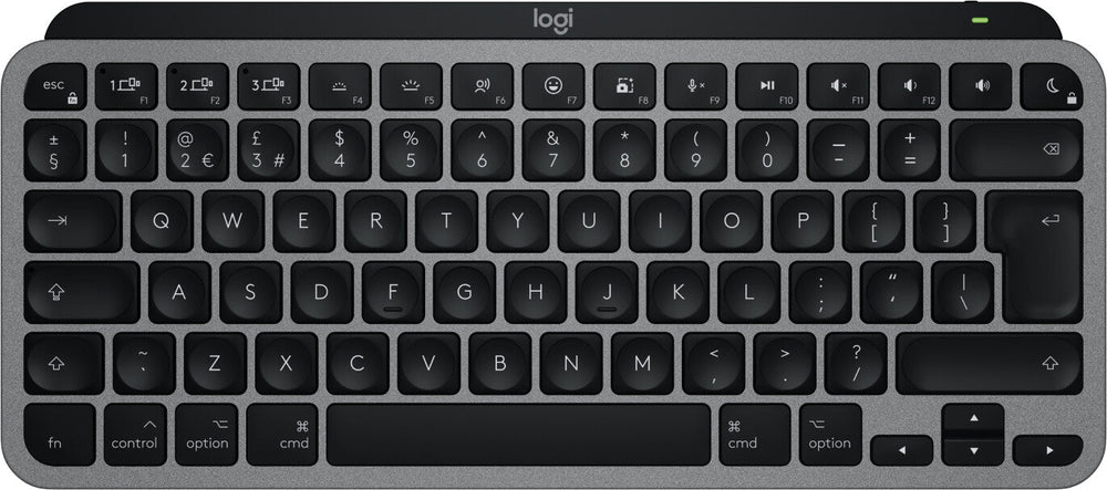 Home/Office. Bluetooth Scissor key switch. QWERTY UK English. Mini. Backlight LED White. Black, Grey. 1 pc(s). MASTERED FOR MAC. You’ll get more functionality with a dedicated Mac key layout, matching Apple finishes in space gray and pale gray, smart illumination, programmable keys.. Also available in a full-size version with an integrated numpad. See MX Keys S for Mac.. FAST FLUID PRECISE TYPING. Type with confidence and speed with spherically-dished keys shaped for your fingertips, minimizing the chances of a mistype, while increased key stability reduces noise.. AUTOMATE REPETITIVE TASKS. Easily create and share time-saving Smart Actions shortcuts to perform multiple actions with a single keystroke with the Logi Options+ app. MINI SIZE, HUGE COMFORT. The minimalist form factor aligns your shoulders and allows you to place your mouse closer to your keyboard for less hand reaching – for better posture and improved ergonomics.. SMART ILLUMINATION KEEPS BRIGHT IDEAS FLOWING. Backlit keys light up when your hands approach the keyboard and automatically brighten or fade to suit your environment.. CONNECT WITH UP TO 3 APPLE DEVICES. Pair MX Keys Mini for Mac with multiple Mac computers and iPads via Bluetooth Low Energy and switch between them at the push of a button.. NEVER COMPROMISE. CHOOSE RECYCLED. There is no reason to compromise performance with sustainability. That’s why our products are made with high quality recycled plastic and engineered for speed, precision, and high performance.. Keyboard. Proximity sensor. Yes. On/off switch. Yes. Bluetooth Low Energy (BLE). Yes. Key travel distance. 1.8 mm. Multimedia keys. Yes. Programmable hot keys. Yes. Hot keys. Yes. Multi-device support. Yes. Keyboard keys operating life. 10 million characters. Numeric keypad. No. Keyboard form factor. Mini. Pointing device. No. Keyboard language. UK English. Keyboard layout. QWERTY. Keyboard key switch. Scissor key switch. Device interface. Bluetooth. Connectivity technology. Wireless. Recommended usage. Home/Office. Design. LED indicators. Yes. Surface coloration. Monochromatic. Product colour. Black, Grey. Ergonomic design. Yes. Keyboard style. Straight. Adjustable backlight. Yes. Backlight colour. White. Backlight type. LED. Backlight. Yes. Features. Wireless range. 10 m. Power. Charging source. USB Type-C. Rechargeable. Yes. Service life of battery. 5 month(s). Battery capacity. 1500 mAh. Battery technology. Lithium Polymer (LiPo). Keyboard battery type. Built-in battery. Power source type. Battery. Mouse. Mouse included. No. System requirements. Mobile operating systems supported. iOS 13.4, iPadOS 14. Mac operating systems supported. Mac OS X 10.15 Catalina, Mac OS X 10.15.3 Catalina, Mac OS X 11.0 Big Sur, Mac OS X 12.0 Monterey, Mac OS X 13.0 Ventura, Mac OS X 14.0 Sonoma. Sustainability. Sustainability compliance. Yes. Sustainability certificates. Forest Stewardship Council (FSC). Total carbon footprint (kg of CO2e). 9.96. Weight & dimensions. Keyboard weight. 506.4 g. Keyboard dimensions (WxDxH). 295.99 x 20.97 x 131.95 mm. Packaging data. Package type. Box. Packaging content. Packaging content. KeyboardUSB-C charging cable (USB-C to USB-C)User documentation. User guide. Yes. Cables included. USB Type-C. Receiver included. No. Number of products included. 1 pc(s). Other features. Warranty period. 2 year(s). Applications supported. Logi Options+. Post-consumer recycled plastic. 30%. Compatibility. Logi Bolt USB Receiver. MX Keys Mini for Mac