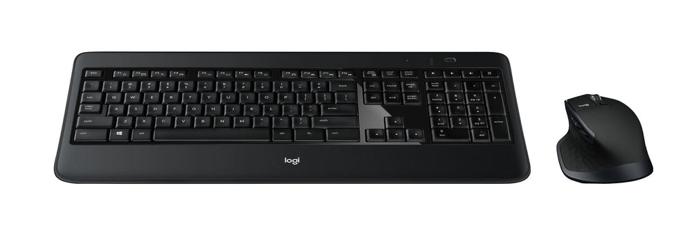 Advanced backlit typing.. Mouse anywhere, even on glass.. MX mouse experience.. Rechargeable batteries.. Personalised productivity.. Power through your tasks with a premium keyboard and mouse combo. The advanced keyboard is full-sized and comfortable, with smart backlighting and customizable keys. The MX mouse features a speed-adaptive scroll-wheel, a unique thumb wheel and, thanks to it’s Darkfield Laser sensor, it tracks anywhere, even on glassⁱ.. Rechargeable via the supplied Micro-USB cable, the keyboard and mouse keep working for up to 10 days on a single charge.². Both devices connect via a single Logitech Unifying USB receiver, offering 10m range³, Easy-Switch™ technology and a Bluetooth® Wireless Technology connection means you can connect the mouse to a second or even a third computer.. 1 4mm minimum thickness. 2 Battery life may vary on user and computing conditions.. 3 Wireless range may vary due to environmental and computing conditions.. Keyboard. Bluetooth version. 4.0. Frequency band. 2.4 GHz. Fingerprint reader. No. Purpose. PC/Server. USB hub. No. Windows keys. Yes. Numeric keypad. Yes. Keyboard form factor. Full-size (100%). Pointing device. No. Keyboard language. French. Keyboard layout. AZERTY. Device interface. USB. Connectivity technology. Wireless. Recommended usage. Universal. Design. Surface coloration. Monochromatic. Product colour. Black. Wrist rest. No. Keyboard style. Straight. Backlight. Yes. Features. Retractable cable. Yes. Extension cable length. 1.5 m. Cable length. 1.8 m. Wireless range. 10 m. Power. Number of batteries supported. 3. Charging source. Micro-USB B. USB charging. Yes. Rechargeable. Yes. Battery capacity. 1500 mAh. Battery technology. Lithium Polymer (LiPo). Number of batteries (keyboard). 1. Keyboard battery type. Built-in battery. Power source type. Battery. Mouse. Scroll type. Wheel. Scroll. Yes. Number of movement resolution modes. 2. Customizable movement resolution. Yes. Movement resolution. 1000 DPI. Form factor. Right-hand. Mouse included. Yes. System requirements. Mac compatibility. Yes. Windows operating systems supported. Windows 10, Windows 11. Weight & dimensions. Mouse weight. 145 g. Mouse dimensions (WxDxH). 85.7 x 126 x 48.4 mm. Keyboard weight. 750 g. Keyboard dimensions (WxDxH). 487 x 195 x 27 mm. Packaging data. Package type. Box. Package weight. 1.6 kg. Package height. 204 mm. Package depth. 564 mm. Package width. 57 mm. Packaging content. User guide. Yes. Cables included. Micro-USB. Unifying receiver. Yes. Receiver type. Unifying receiver. Receiver included. Yes. Logistics data. Master (outer) cases per intermodal container (40ft, HC). 9600 pc(s). Master (outer) cases per intermodal container (40ft). 8000 pc(s). Master (outer) cases per intermodal container (20ft). 3840 pc(s). Products per intermodal container (40ft, HC). 2400 pc(s). Products per intermodal container (40ft). 2000 pc(s). Products per intermodal container (20ft). 960 pc(s). Master (outer) case gross weight. 6.92 kg. Master (outer) case height. 217 mm. Master (outer) case length. 575 mm. Master (outer) case width. 237 mm. Harmonized System (HS) code. 84716060. leaflet
