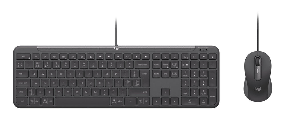 Office. USB. QWERTY English. Full-size (100%) Numeric keypad. Island-style keyboard Windows keys Adjustable keyboard height. Mouse included. Graphite. 2 pc(s). Multi-OS USB-C keyboard and mouse combo with laptop-style typing and ambidextrous mouse for workplaces that require wired connectivity.. WIRED, DONE RIGHT. Wired solutions are essential to certain industries. Signature Slim Wired K620 for Business brings an improved experience to those workplaces with high-quality, fluid typing, fast-access to AI tools and more. Works with multiple OS for simple deployment.. HIGH-QUALITY, FLUID TYPING. The keyboard features low-profile, laptop-style keys that are thoughtfully designed with a subtle scoop to deliver a high-quality typing experience. The fluid keystrokes are quiet and feel instantly familiar, and the smooth keys offer precise and efficient typing. Ideal for touch typists.. SCROLL FAST, SCROLL WITH PRECISION. SmartWheel technology offers two kinds of scrolling for different work tasks. Flick the mouse wheel for precise, line-by-line scrolling for documents or detail work, or for super-fast scrolling for long web pages and endless rows of spreadsheet cells.. UNLOCK AI TOOLS WITH ONE KEYSTROKE. Seamlessly add AI companions to improve ways of working with the AI Launch Key. Without additional software required, get instant access to Copilot in a Windows setup or Gemini for ChromeOS if available on your device.. CUSTOMIZABLE, PRODUCTIVE SHORTCUTS. Logi Tune allows employees to easily mute themselves, turn their video off or on, or share screen during calls. It also provides a high degree of customization, including the F-row shortcut keys and a dedicated Action Key to assign specific shortcuts.. QUIET TYPING AND CLICKING. Stay focused with quiet keys and clicks that are light to the touch. Signature Wired M520 for Business is equipped with Silent Touch technology to produce 90% less click noise from the mouse.. CONTOURED, AMBIDEXTROUS MOUSE. Signature Wired M520 mouse is designed in a comfortable, ambidextrous shape so that it works perfectly for both left- and right-handed users.. WORKS ACROSS PLATFORMS. Signature Slim Wired K620 for Business works with Windows, ChromeOS, or macOS with a simple toggle switch that IT can set up at deployment or employees can adjust when they sit at the desk.. GET A CENTRALIZED VIEW WITH SYNC. With Logitech Sync, our secure cloud-based management portal, IT managers can monitor the deployment of individual devices and ensure that each device is always ready to use.. MORE WAYS TO CONNECT. You’ve got choices. If there are no USB-C ports left, easily connect the Signature Slim Wired K620 keyboard with the Logi USB-A to USB-C adaptor to the USB-A port on laptops or docking stations.. IMPROVED POWER EFFICIENCY. Signature Slim Wired K620 for Business is designed to consume 49% less energy thanks to improvements like using a low-power microcontroller and optimizing the LED functions.. Keyboard. Country of origin. Thailand. Certification. Chromebook. Programmable hot keys. Yes. Hot keys. Yes. Windows keys. Yes. Keyboard key profile. Low-profile. Keyboard keys operating life. 10 million characters. Keyboard number of keys. 108. Numeric keypad. Yes. Keyboard form factor. Full-size (100%). Pointing device. No. Keyboard language. English. Keyboard layout. QWERTY. Device interface. USB. Connectivity technology. Wired. Recommended usage. Office. Design. LED indicators. Yes. Material. Plastic. Surface coloration. Monochromatic. Product colour. Graphite. Adjustable keyboard height. Yes. Island-style keyboard. Yes. Keyboard style. Straight. Backlight. No. Features. Cable length. 1.8 m. USB connector type. USB Type-C. Power. USB Type-C charging port. No. Power source type. USB. Mouse. Mouse cable length. 1.8 m. Scroll type. Wheel. Scroll. Yes. Buttons type. Pressed buttons. Buttons quantity. 4. Movement resolution. 4000 DPI. Movement detection technology. Optical. Form factor. Ambidextrous. Mouse included. Yes. System requirements. Other operating systems supported. ChromeOS. Linux operating systems supported. Yes. Mac operating systems supported. Mac OS X 12.0 Monterey, Mac OS X 13.0 Ventura, Mac OS X 14.0 Sonoma, Mac OS X 15.0 Sequoia. Windows operating systems supported. Windows 10, Windows 11. Operational conditions. Operating temperature (T-T). 0 - 40 °C. Sustainability. Compliance certificates. CE, EAC, UKCA. Weight & dimensions. Mouse weight. 105 g. Mouse dimensions (WxDxH). 61 x 38.8 x 108.2 mm. Keyboard weight. 707 g. Keyboard dimensions (WxDxH). 433.8 x 23.1 x 134.8 mm. Packaging data. Package weight. 950 g. Package height. 141 mm. Package depth. 65 mm. Package width. 441 mm. Packaging content. User guide. Yes. AC adapter included. No. Adapters included. USB. Number of products included. 2 pc(s). Other features. Warranty period. 2 year(s). leaflet