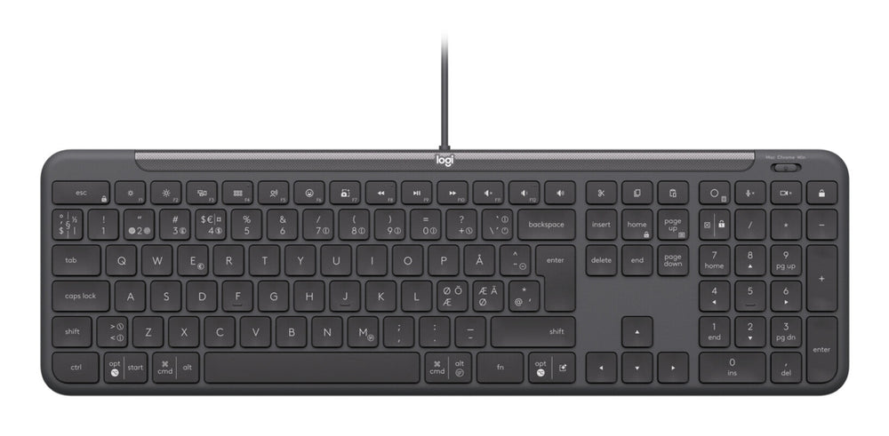 Office. USB. QWERTY English. Full-size (100%) Numeric keypad. Island-style keyboard Windows keys Adjustable keyboard height. Graphite. 1 pc(s). Elevate productivity with high-quality, fluid typing and shortcut keys like AI Launch Key for instantly accessing AI tools* or meeting control keys to quickly mute yourself or turn off the video**. Works with multiple OS. *Out of the box, the key launches Copilot in Windows or Gemini for ChromeOS if available on your device. Visit logitech.com/support/K620B for more details. **Meeting control keys require Logi Options+ or Logi Tune installed to get full functionality. Mute microphone key works out of the box on Microsoft Teams and Webex on Windows. Visit logitech.com/support/K620B for more details.. WIRED, DONE RIGHT. Wired solutions are essential to certain industries. Signature Slim Wired K620 for Business brings an improved experience to those workplaces with high-quality, fluid typing, fast-access to AI tools and more. Works with multiple OS for simple deployment.. HIGH-QUALITY, FLUID TYPING. The keyboard features low-profile, laptop-style keys that are thoughtfully designed with a subtle scoop to deliver a high-quality typing experience. The fluid keystrokes are quiet and feel instantly familiar, and the smooth keys offer precise and efficient typing. Ideal for touch typists.. UNLOCK AI TOOLS WITH ONE KEYSTROKE. Seamlessly add AI companions to improve ways of working with the AI Launch Key. Without additional software required, get instant access to Copilot in a Windows setup or Gemini for ChromeOS if available on your device.. CUSTOMIZABLE, PRODUCTIVE SHORTCUTS. Logi Tune allows employees to easily mute themselves, turn their video off or on, or share screen during calls. It also provides a high degree of customization, including the F-row shortcut keys and a dedicated Action Key to assign specific shortcuts.. WORKS ACROSS PLATFORMS. Signature Slim Wired K620 for Business works with Windows, ChromeOS, or macOS with a simple toggle switch that IT can set up at deployment or employees can adjust when they sit at the desk.. GET A CENTRALIZED VIEW WITH SYNC. With Logitech Sync, our secure cloud-based management portal, IT managers can monitor the deployment of individual devices and ensure that each device is always ready to use.. MORE WAYS TO CONNECT. You’ve got choices. If there are no USB-C ports left, easily connect the Signature Slim Wired K620 keyboard with the Logi USB-A to USB-C adaptor to the USB-A port on laptops or docking stations.. IMPROVED POWER EFFICIENCY. Signature Slim Wired K620 for Business is designed to consume 49% less energy thanks to improvements like using a low-power microcontroller and optimizing the LED functions.. Keyboard. Country of origin. Thailand. Certification. Chromebook. Programmable hot keys. Yes. Hot keys. Yes. Windows keys. Yes. Keyboard key profile. Low-profile. Keyboard keys operating life. 10 million characters. Keyboard number of keys. 108. Numeric keypad. Yes. Keyboard form factor. Full-size (100%). Pointing device. No. Keyboard language. English. Keyboard layout. QWERTY. Device interface. USB. Connectivity technology. Wired. Recommended usage. Office. Design. LED indicators. Yes. Material. Plastic. Surface coloration. Monochromatic. Product colour. Graphite. Adjustable keyboard height. Yes. Island-style keyboard. Yes. Keyboard style. Straight. Backlight. No. Features. Cable length. 1.8 m. USB connector type. USB Type-C. Power. USB Type-C charging port. No. Power source type. USB. Mouse. Mouse included. No. System requirements. Other operating systems supported. ChromeOS. Linux operating systems supported. Yes. Mac operating systems supported. Mac OS X 12.0 Monterey, Mac OS X 13.0 Ventura, Mac OS X 14.0 Sonoma, Mac OS X 15.0 Sequoia. Windows operating systems supported. Windows 10, Windows 11. Operational conditions. Operating temperature (T-T). 0 - 40 °C. Sustainability. Compliance certificates. CE, EAC, UKCA. Weight & dimensions. Keyboard weight. 707 g. Keyboard dimensions (WxDxH). 433.8 x 23.1 x 134.8 mm. Packaging data. Package weight. 810 g. Package height. 142 mm. Package depth. 33 mm. Package width. 446 mm. Packaging content. User guide. Yes. AC adapter included. No. Adapters included. USB. Number of products included. 1 pc(s). Other features. Warranty period. 2 year(s). leaflet