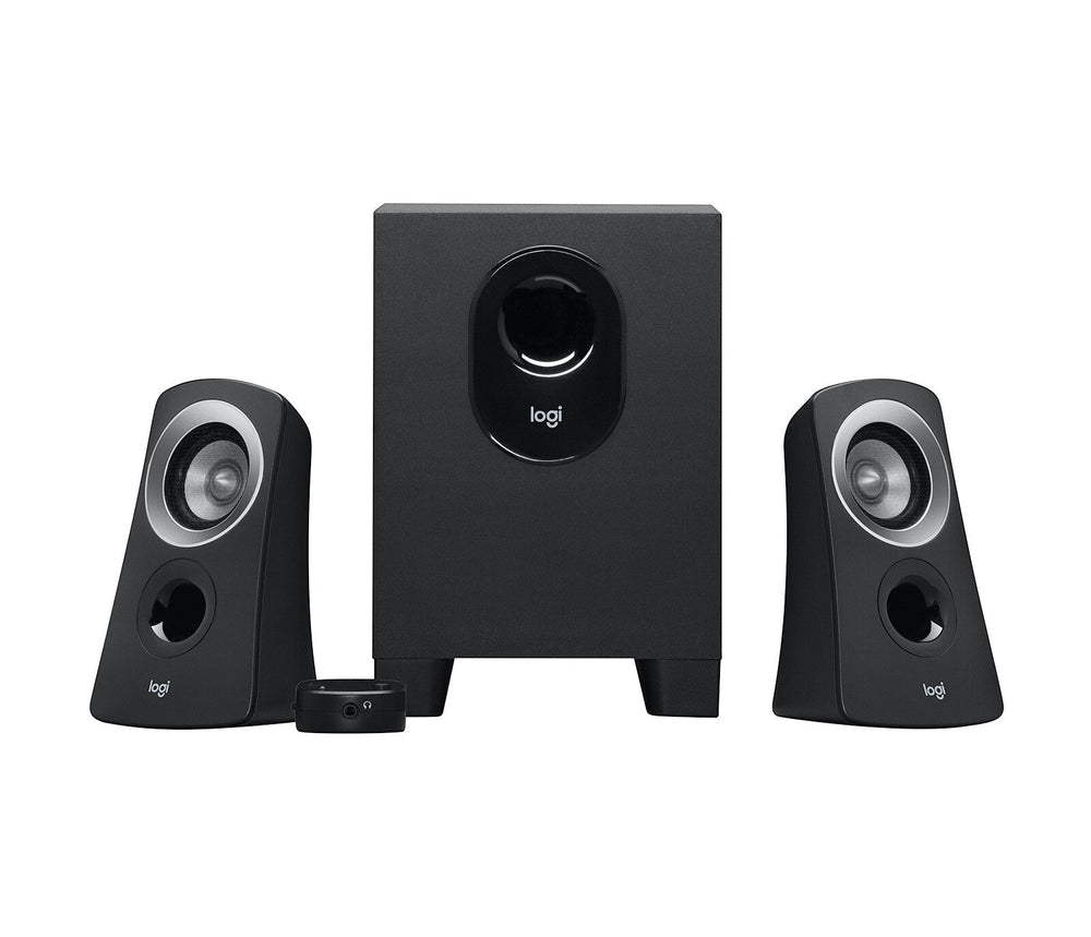The control pod makes it easy to control volume and headphone.. You can fill your room with big, balanced sound (25 watts).. The compact subwoofer fits into tight spaces and delivers deeper bass when you want to feel the beat.. With its easy setup, just connect the speakers to the subwoofer and plug the subwoofer into your computer. That's it.. You're listening to music and online videos, watching movies and TV on your computer. But your built-in computer audio just won't cut it. That's where the Logitech® Speaker System Z313 comes in, offering you the easy way to kick back and enjoy your music. Its convenient control pod makes it easy to control volume and even plug in your headphones. 25 watts (RMS) of power fills your room with big, balanced sound. The compact subwoofer fits into tight spaces and delivers deeper bass when you want to feel the beat. Plus, it's a snap to set up. Just connect the speakers to the subwoofer, and plug the subwoofer into your computer. That's it.. Performance. Remote control type. Wired. Remotely operated. Yes. Product colour. Black. Recommended usage. PC. Peak Music Power Output (PMPO). 50 W. RMS rated power. 25 W. Audio output channels. 2.1 channels. Amplifier. Amplification device included. No. Satellite speakers. Satellite speaker weight. 240 g. Satellite speaker dimensions (WxDxH). 81 x 89 x 146 mm. Satellite speakers RMS power. 5 W. Number of satellite speakers. 2. Subwoofer. Subwoofer weight. 2.3 kg. Subwoofer dimensions (W x D x H). 220 x 150 x 228 mm. Subwoofer drivers quantity. 1. Subwoofer RMS power. 15 W. Power. Power plug type. Type C. Power source. AC. Ports & interfaces. Headphone connectivity. 3.5 mm. Line-in. Yes. Headphone outputs. 1. Line-in connectivity. 3.5 mm. Bluetooth. No. Connectivity technology. Wired. Packaging data. Package type. Box. Package weight. 3.1 kg. Package height. 239.7 mm. Package depth. 327 mm. Package width. 158.8 mm. Packaging content. User guide. Yes. Other features. Suitable for use in country/location. Europe. Logistics data. Master (outer) case gross weight. 6.81 kg. Master (outer) case height. 343 mm. Master (outer) case length. 492 mm. Master (outer) case width. 168 mm. Harmonized System (HS) code. 85182200. Technical details. Frequency range. 48 - 20000 Hz. System requirements. Windows operating systems supported. Windows 10, Windows 11, Windows 7, Windows 8, Windows 8.1, Windows Vista, Windows XP. Mac operating systems supported. Mac OS X 10.10 Yosemite, Mac OS X 10.11 El Capitan, Mac OS X 10.12 Sierra, Mac OS X 10.13 High Sierra, Mac OS X 10.14 Mojave, Mac OS X 10.15 Catalina, Mac OS X 10.15.3 Catalina, Mac OS X 10.3 Panther, Mac OS X 10.4 Tiger, Mac OS X 10.5 Leopard, Mac OS X 10.6 Snow Leopard, Mac OS X 10.7 Lion, Mac OS X 10.8 Mountain Lion, Mac OS X 10.9 Mavericks, Mac OS X 11.0 Big Sur, Mac OS X 12.0 Monterey, Mac OS X 13.0 Ventura