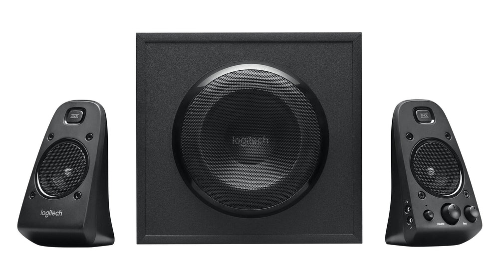 These speakers have met strict performance standards to achieve THX® certification - for quality you can count on.. With 200 watts (RMS) of power, you can listen as loud as you want to. You'll hear - and feel - immersive audio that brings music, movies and games to life.. RCA and 3.5 mm inputs, as well as a built-in headphone jack, make it easy to get great sound from up to three audio devices.. Your powerful 2.1 system delivers easy, two-satellite setup and a powerful subwoofer for big sound - even in large spaces.. You're in command with integrated controls - dial the volume and bass up or down to customise your listening experience.. Logitech® Speaker System Z623. For big, bold, 2.1 sound. THX® Certified means quality you can count on-these speakers have met strict performance standards to achieve THX certification. You'll hear-and feel-immersive audio from 200 watts (RMS) of power that brings music, movies, and games to life. Multiple inputs-and a built-in headphone jack-make it easy to get great sound from up to three audio devices. Easy, two-satellite setup and a powerful subwoofer give you big sound-even in large spaces. And integrated controls put you in command-dial the volume and bass up or down to customize your listening experience.. Performance. Certification. THX. Volume control. Rotary. Product colour. Black. Recommended usage. Universal. Peak Music Power Output (PMPO). 400 W. RMS rated power. 200 W. Audio output channels. 2.1 channels. Amplifier. Amplification device included. No. Satellite speakers. Satellite speaker weight. 1.75 kg. Satellite speaker dimensions (WxDxH). 117 x 126 x 196 mm. Satellite speakers RMS power. 35 W. Number of satellite speakers. 2. Subwoofer. Subwoofer weight. 7 kg. Subwoofer dimensions (W x D x H). 305 x 266 x 284 mm. Bass adjustment. Yes. Subwoofer RMS power. 130 W. Power. Power plug type. Type C. Power source. AC. Ports & interfaces. Headphone connectivity. 3.5 mm. Headphone outputs. 1. Bluetooth. No. Connectivity technology. Wired. Packaging data. Package type. Box. Package weight. 9.3 kg. Package height. 421 mm. Package depth. 311 mm. Package width. 302 mm. Packaging content. Cables included. Audio (3.5mm), Audio Direct. User guide. Yes. Other features. Audio RCA inputs. 1. 3.5 mm (1/8-inch) in. Yes. Logistics data. Master (outer) case GTIN (EAN/UPC). 50992060248209. Master (outer) case gross weight. 9.6 kg. Master (outer) case height. 335 mm. Master (outer) case length. 440 mm. Master (outer) case width. 320 mm. Products per pallet. 36 pc(s). Products per intermodal container (40ft). 1351 pc(s). Products per intermodal container (20ft). 651 pc(s). Harmonized System (HS) code. 85182200. Technical details. Frequency range. 35 - 20000 Hz. Packaging content. Speakers3.5 mm audio input cableSpeaker connector cablesUser documentation2-year manufacturer's guarantee and full product support. Compliance certificates. CE, Federal Communications Commission (FCC). mmo_5123286_1499708569_6902_23553.pdf. Logitech Z623 Speakers. New Logitech Speaker System Z623 Features THX