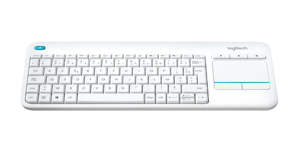 TV. RF Wireless. AZERTY French. Mini Touchpad. Windows keys. White. 1 pc(s). Keyboard. On/off switch. Yes. Noise level. 55 dB. Frequency band. 2.4 GHz. Fingerprint reader. No. USB hub. No. Hot keys. Yes. Windows keys. Yes. Keyboard keys operating life. 5 million characters. Numeric keypad. No. Keyboard form factor. Mini. Pointing device. Touchpad. Keyboard language. French. Keyboard layout. AZERTY. Device interface. RF Wireless. Connectivity technology. Wireless. Recommended usage. TV. Design. Built-in display. No. Surface coloration. Monochromatic. Product colour. White. Wrist rest. No. Keyboard style. Straight. Backlight. No. Features. Plug and Play. Yes. Wireless range. 10 m. Power. Number of batteries supported. 2. Battery type. AA. Service life of battery. 18 month(s). Battery capacity. 2000 mAh. Battery technology. Alkaline. Keyboard battery type. AA. Power source type. Battery. Mouse. Mouse battery life. 18 month(s). Mouse battery type. AA. Mouse included. No. System requirements. Other operating systems supported. ChromeOS. Mobile operating systems supported. Android. Windows operating systems supported. Yes. Weight & dimensions. Touchpad height. 7.6 cm. Touchpad width. 4.7 cm. Keyboard weight. 390 g. Keyboard dimensions (WxDxH). 354.3 x 23.5 x 139.9 mm. Packaging data. Package type. Box. Package volume. 1755 cm³. Package weight. 530 g. Package height. 153 mm. Package depth. 370 mm. Package width. 31 mm. Packaging content. User guide. Yes. Batteries included. Yes. Wireless receiver interface. USB Type-A. Receiver included. Yes. Number of products included. 1 pc(s). Logistics data. Products per intermodal container (40ft). 29400 pc(s). Products per intermodal container (20ft). 14280 pc(s). Master (outer) cases per pallet. 78 pc(s). Products per pallet. 780 pc(s). Master (outer) case gross weight. 5.76 kg. Master (outer) case height. 321 mm. Master (outer) case length. 379 mm. Master (outer) case width. 171 mm. Master (outer) case GTIN (EAN/UPC). 50992060592814. Products per master (outer) case. 10 pc(s). Harmonized System (HS) code. 84716060