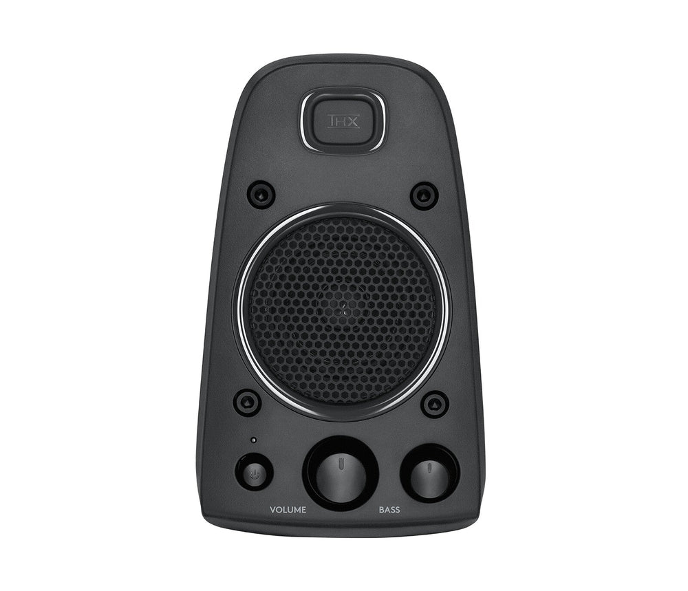 THX® Certified audio is designed to deliver the most accurate audio experience straight out of the box. These Logitech Z625 THX Certified speakers are tuned to exact specifications to truthfully deliver the artist’s vision right into your living room.. The 200 watts RMS/400 watts peak power delivers crisp sound and thundering bass. Powerful THX® audio you can hear and feel.. Powerful THX® Sound 2.1 speaker system provides a versatile setup by supporting multiple inputs simultaneously including optical, 3.5 mm and RCA. Connect up to three compatible devices such as your game console, television and computer.. Easily access all controls, including power, volume, bass, headphone jack and auxiliary jack on the right satellite speaker.. THX Certified 2.1 speaker system with deep bass delivering gaming grade audio and the ultimate sound experience for your movies and music. With 400Watts of Peak Power this speaker system delivers crisp sound and thundering bass. Supports multiple inputs simultaneously including optical, 3.5mm and RCA. Connect up to three compatible devices such as your game console, television and computer. No need to disconnect when switching between audio sources. Easily access all controls on the right satellite speaker.. Performance. Volume control. Rotary. Product colour. Black. Recommended usage. Universal. RMS rated power. 200 W. Audio output channels. 2.1 channels. Amplifier. Amplification device included. No. Satellite speakers. Satellite speaker weight. 850 g. Satellite speaker dimensions (WxDxH). 116 x 124 x 195 mm. Satellite speakers RMS power. 35 W. Number of satellite speakers. 2. Front speakers. Front speaker weight. 900 g. Front speaker dimensions (WxDxH). 116 x 135 x 195 mm. Subwoofer. Subwoofer weight. 6.4 kg. Subwoofer dimensions (W x D x H). 303 x 264 x 282 mm. Bass adjustment. Yes. Subwoofer RMS power. 130 W. Power. Power plug type. Type C. Power source. AC. Ports & interfaces. Digital audio optical in. 1. Headphone connectivity. 3.5 mm. Line-in. Yes. Headphone outputs. 1. Line-in connectivity. 3.5 mm. Bluetooth. No. Connectivity technology. Wired. Packaging data. Package type. Box. Package weight. 9.3 kg. Package height. 421 mm. Package depth. 311 mm. Package width. 302 mm. Packaging content. Cables included. Audio (3.5mm), Optical. User guide. Yes. Other features. Audio RCA inputs. 1. 3.5 mm (1/8-inch) in. Yes. Logistics data. Master (outer) case gross weight. 9.6 kg. Master (outer) case height. 335 mm. Master (outer) case length. 440 mm. Master (outer) case width. 320 mm. Harmonized System (HS) code. 85182200. Technical details. Packaging content. Two satellite speakersSubwooferOptical cable3.5 mm audio cableUser documentation2-year manufacturer's guarantee and full product support. manual pdf