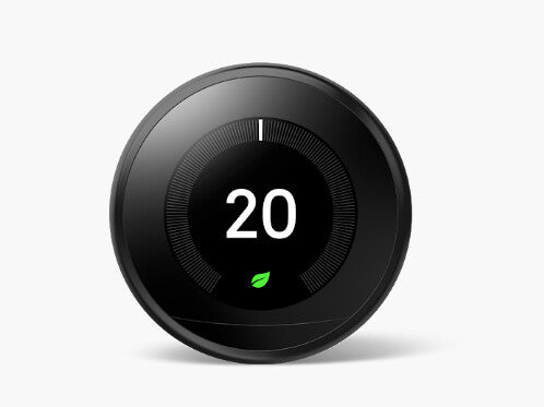 Smart thermostat Memory function. Wi-Fi. Display: LCD. Power source: AC. Temperature sensor Humidity sensor. Black. Programs itself. Saves energy.¹. Meet the 3rd-gen Nest Learning Thermostat. It has new rings and a big, sharp display. And hot water control.. Relax, we’ve got you covered.. The Nest Learning Thermostat should be installed by a professional. A Nest Pro will install it in the right location, connect the Heat Link and set it up for you. Nest Stand sold separately.. Your thermostat controls 60% of your energy bill. So shouldn’t it help you save energy?. The Nest thermostat does. Since 2011, we estimate that it’s saved over 39 billion kWh of energy in millions of homes worldwide.² Because it learns from you. It gets to know the temperature that you like when you’re at home. And turns itself down when you’re away. It even learns how your home warms up or how draughty it is, so it only uses the energy it needs. That’s how the Nest thermostat saves energy.. Your life with Nest.. The Nest Learning Thermostat automatically adapts as your life changes. Just use it for a week and it programs itself.. Control your hot water.. Now, you can control your hot water tank with the Nest Learning Thermostat. It comes with a hot water schedule — just adjust it from the Nest app. You can boost the heat so that you have extra hot water if you want it. And when you’re away from home for a few days, you don’t have to remember to turn off the hot water. The Nest Learning Thermostat will do it for you. Follow the Leaf.. Change the temperature to save energy and you’ll be rewarded with a Leaf. The Leaf learns how to help you save, so it appears at different temperatures for different families.. Nest Stand sold separately.. See how much you’ve saved.. Nest shows you how much energy you use every day in Energy History, and every month in your Home Report. So you can see when you use more energy, such as at the weekend or Monday nights, and how to use less.. It lights up when you walk into the room.. Now the Nest Learning Thermostat does something new. It’s called Farsight, and it lights up to show you the temperature, weather or time. You can even choose a digital or analogue clock face. Farsight is big and bright on the beautiful display – you can see it from across the room.. Quick view.. Press the display and turn the ring. You’ll see a summary of what your thermostat is up to and you can reach Settings, Energy History or your schedule.. Control from anywhere.. With the Nest app, your thermostat lives on your wall and in your pocket. Once you connect your thermostat to Wi-Fi, you can control it from anywhere. Adjust the temperature from the app, and the Nest Learning Thermostat adjusts quickly back at home.. Know that your home is safe.. What if it gets so cold that your boiler can’t keep up? Get an alert on your phone if your pipes could burst.. See if Nest will work in your home.. Nest is compatible with most central heating systems.. What’s the Nest Heat Link?. You’ll see the Nest Heat Link in the box with the Nest Learning Thermostat. They work with your boiler to control the temperature of your home. The Heat Link connects to your boiler wirelessly or with existing thermostat wires. Then it communicates with the Nest Learning Thermostat to turn on and off, or modulate the heat.. Features. Product colour. Black. Wi-Fi standards. 802.11b, 802.11g, Wi-Fi 4 (802.11n). Wi-Fi frequency. 2.4 GHz. Wi-Fi. Yes. Memory function. Yes. Smart thermostat. Yes. Display. Display. LCD. Display resolution. 480 x 480 pixels. Power. Power source. AC. Sensors. Temperature sensor. Yes. Ambient light sensor. Yes. Humidity sensor. Yes. Weight & dimensions. Height. 32 mm. Depth. 84 mm. Width. 84 mm. Meet the 3rd generation Nest Learning Thermostat