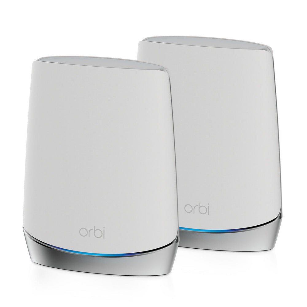 Robust Performance Whole Home Mesh WiFi System – Covers large homes up to 5,000 sq. ft with fast WiFi. System includes a WiFi router and one satellite. Powerful AX Mesh WiFi System – Keeps all your connections strong in every room, all the time. Enjoy 4K/8K UHD streaming and online gaming to multiple screens simultaneously without interruption. WiFi 6 Brings Capacity Beyond Belief – Latest generation WiFi 6 technology is faster than ever, with 4X increased capacity compared to a WiFi 5 (802.11ac) system. Even with 40 or more devices, WiFi 6 supports your devices’ connections for today and tomorrow. Seamless and Consistent Mesh WiFi Coverage – From front door to backyard and in every corner of your home. A dedicated quad-stream WiFi 6 backhaul allows consistent gigabit throughput throughout your home. Built for the Gigabit Internet Speeds Everywhere † – Innovative Tri-band WiFi helps maximize the internet speeds available in your home to every device. Gigabit Internet – 1Gbps Ethernet port support gigabit Internet speeds available from service providers. NETGEAR Armor™ - Best-in-class anti-virus and data theft protection for ALL of your smartphones and computers. Protects your connected home from internet threats. Easy to Set Up and Use – Simple setup and WiFi management with the Orbi app. Create a guest network, view connected devices, and perform speed tests. Connect More Wired Devices – One WAN + three LAN ports on the router and two LAN ports on the satellite are ideal for connecting more devices around your home. Works with Amazon Alexa and the Google Assistant so you can use voice commands to control your home WiFi network. Coverage and Capacity. More capacity. More coverage.. The Orbi WiFi 6 System has 4x increased capacity and is equipped to handle 8 streams at once. Even with 40 or more devices connected to your network, you get the smoothest WiFi experience everywhere in your home.. Never Worry About WiFi Again.. More speed. More coverage. Orbi WiFi 6 uses NETGEAR's patented tri-band mesh technology with a patented dedicated backhaul to provide the ultimate smart home experience with seamless roaming.. Complete Protection from Online Threats. - NETGEAR Armor protects your home from internet threats by providing best-in-class anti-virus protection for all your connected devices.. - Get instant alerts to your smartphone or computer when threats are detected or blocked. Activate Free Trial of NETGEAR Armor. Orbi App. Do more with your home's WiFi.. Design. Reset button. Yes. Maximum coverage. 460 m². Antennas quantity. 6. Antenna type. Internal. LED indicators. Power. Product colour. White. Wireless LAN features. Guest access. Yes. Security algorithms. 128-bit AES. Networking standards. IEEE 802.11i. WLAN data transfer rate (third band). 2400 Mbit/s. WLAN data transfer rate (second band). 1200 Mbit/s. WLAN data transfer rate (first band). 600 Mbit/s. Wi-Fi standards. 802.11a, 802.11b, 802.11g, Wi-Fi 4 (802.11n), Wi-Fi 5 (802.11ac), Wi-Fi 6 (802.11ax). Top Wi-Fi standard. Wi-Fi 6 (802.11ax). Wi-Fi band. Tri-band (2.4 GHz / 5 GHz / 5 GHz). Features. MIMO. Yes. MU-MIMO technology. Yes. Mac operating systems supported. Yes. Virtual assistant. Amazon Alexa & Google Assistant. Flash memory. 512 MB. Internal memory. 1000 MB. Processor cores. 4. Processor frequency. 1.4 GHz. Built-in processor. Yes. Ports & interfaces. DC-in jack. Yes. Ethernet WAN. Yes. Ethernet LAN (RJ-45) ports. 5. Weight & dimensions. Weight. 861 g. Height. 231.1 mm. Depth. 71.1 mm. Width. 182.8 mm. Packaging content. Ethernet cable. Yes. Number of units included. 2 pc(s). AC adapter included. Yes. Number of products included. 2 pc(s). Logistics data. Harmonized System (HS) code. 85171800. leaflet. manual pdf