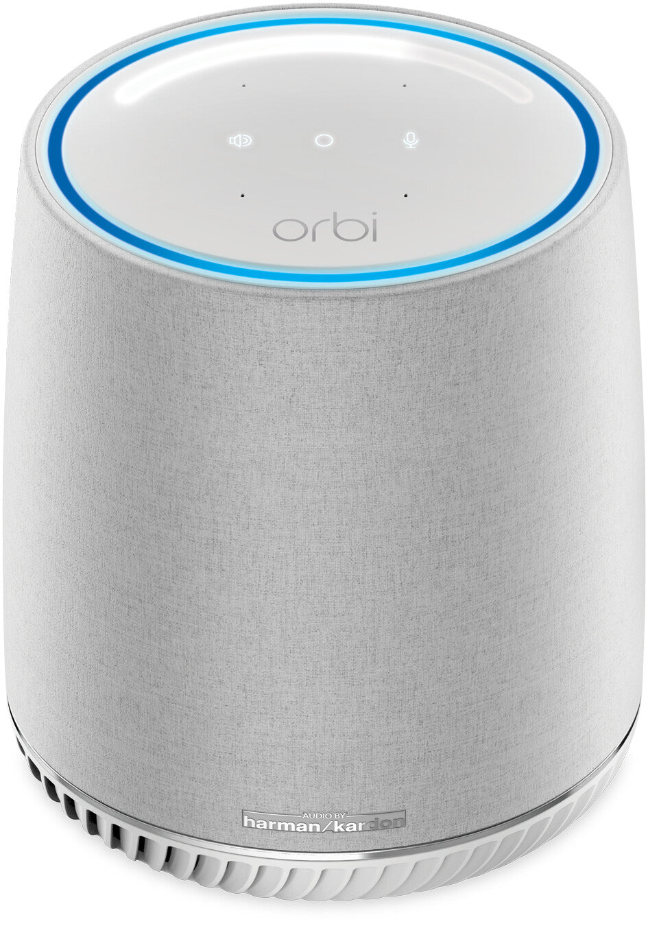 Smart Speakers. Orbi Voice. Orbi Voice Smart Speakers. WiFi Mesh. Smart Home WiFi. Whole Home WiFi. he Orbi™ Voice Smart Speaker (RBS40V-200) extends your existing WiFi with premium audio & Tri-band Mesh WiFi to any room. Built-in Alexa™ Voice Assistant allows you to voice control your music & smart home. It works with any WiFi router, but is optimized for the Orbi WiFi System.. Orbi TM Voice is a smart speaker with premium audio that extends your existing WiFi to any room. It works with any WiFi router, but is optimized for the Orbi WiFi System. It has Amazon Alexa TM built in so you can voice control your music and other smart home devices. High-performance tri-band Mesh WiFi extends your existing WiFi by up to 2,000 square feet so you have better WiFi in more places.. Loudspeakers. Woofer diameter. 8.89 cm. Woofer. Yes. Tweeter diameter. 2.54 cm. Tweeter. Yes. Number of drivers. 2. Number of speakers. 1. Audio output channels. 2.0 channels. Audio. Frequency range. 63 - 20000 Hz. RMS rated power. 35 W. Ports & interfaces. DC-in jack. Yes. 3.5 mm connector. Yes. Bluetooth. Yes. Wi-Fi. Yes. Connectivity technology. Wired & Wireless. Design. On/off switch. Yes. Product colour. Grey, White. Product type. Stereo portable speaker. Performance. Certification. CE. Built-in microphone. Yes. Recommended usage. Universal. Power. AC adapter input voltage. 230 V. AC adapter frequency. 50 Hz. Battery voltage. 19 V. Power source type. DC. Operational conditions. Operating relative humidity (H-H). 0 - 90%. Operating temperature (cooling) (T-T). 0 - 35 °C. Weight & dimensions. Weight. 2.55 kg. Height. 195 mm. Depth. 195 mm. Width. 228 mm. Packaging data. Package type. Box. Package weight. 6.42 kg. Package height. 305 mm. Package depth. 430 mm. Package width. 227 mm. Packaging content. Manual. Yes. Quick start guide. Yes. Quantity per pack. 2 pc(s). Logistics data. Harmonized System (HS) code. 85182200. Other features. Battery current. 3.16 A. leaflet. Introducing Orbi Voice by NETGEAR | Smart Speaker & Mesh WiFi System. How To Quickly Install the Orbi WiFi System | NETGEAR