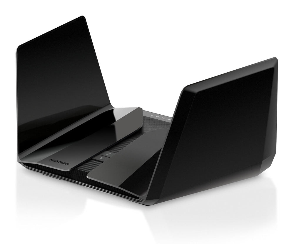 AX11000 WiFi routers. AX WiFi routers. WiFi routers. 12-stream routers. Wi-Fi 6 (802.11ax) routers. Wi-Fi 6. Leading the New Era of Wi-Fi 6. Nighthawk Tri-Band AX12 Wi-Fi 6 Router is powered by the industry’s latest Wi-Fi 6 (802.11ax) standard with 4 times increased data capacities to handle more devices in your growing home network. Blazing-fast combined WiFi speeds up to 10.8Gbps and AX optimized 1.8GHz Quad-core processor powers smart home automation, ultra-smooth 4K/8K streaming, low latency gaming, and more. Multi-Gig 2.5G Ethernet interface can be used for wired devices on LAN or for getting faster Multi-Gig Internet speed. Plus, eight high-performance antennas on the router amplify WiFi signals for maximized range and reliable coverage.. Wi-Fi 6—Ready for Today and Tomorrow’s Smart Home. Introducing Wi-Fi 6—the latest generation of WiFi that delivers four times better performance than AC WiFi. With innovative technologies, such as Orthogonal Frequency-Division Multiple-Access (OFDMA) and intelligent scheduling, i-Fi 6 delivers a huge boost in speed and total capacity. Rising to the challenges of modern smart home demands, this new. Capacity. Wi-Fi 6 gives you improved network capacity for more WiFi devices. Have more fun with the uninterrupted 4K/8K. streaming, gaming, and the smart home experience. With MU-MIMO, Wi-Fi 6 supports up to eight simultaneous. streams for the number of users that can be served double at the same time as compared to an AC router. tandard of WiFi is ready to support more devices with better reliability and faster speeds.. Speed. Get ultra-fast wireless speeds with more connections for all devices with less congestion. You’ll get some blazing connection speeds of 1Gbps or more, 4K/8K streaming, & VR/AR gaming.. Range. Experience reliable and stronger WiFi coverage indoors and outdoors for all your devices. High-performance antennas. on the router amplify WiFi signals for maximized range and reliable coverage.. 12-Stream Tri-Band Wi-Fi. Twelve WiFi spatial streams — eight streams of 5GHz & four streams of 2.4GHz — offer four times the device apacity as compared to typical 2x2 WiFi. This results in a significantly improved network capacity delivering multiple 4K/8K streaming, low latency gaming & new blazing fast Internet speeds.. Versatile Multi-Gig Internet Support. Maximize your Internet speeds up to 2.5Gbps with new versatile Ethernet wired connections. Used for LAN or Internet connectivity, it is 2.5 times the wired speed of a typical Gigabit port. Or aggregate two Ethernet ports for up to 2Gbps of Internet speed.. Powerful Quad-Core 1.8GHz Processor. Ultra-fast processor for smoother 4K/8K UHD streaming, online/VR gaming, and a stronger, more reliable WiFi. experience. This powerful processor is optimized for AX ensuring speed and performance for even more smart home devices and high-speed applications.. Gigibit WiFi to Mobile Devices. Enjoy streaming even more with ultra-fast WiFi speeds to compatible smartphones, laptops and more. Maximize your. available Internet speeds with link aggregation support. Ability to aggregate two Gigabit LAN ports and two Gigabit. WAN ports (configurable).. 4x4 Multi-User MIMO With Two 5GHz Bands. Using multi-user MIMO technology, routers can stream data to multiple devices simultaneously. That means faster downloads and smoother streaming for your devices with 4 streams with each 5G band.. Orthogonal Frequency Division Multiple Access (OFDMA). Using the OFDMA feature of Wi-Fi 6, the WiFi traffic is managed much more efficiently since data is transmitted rom different devices concurrently, rather than having each device’s data wait for its turn. This results in an efficient use of air-time, reduced latency, and increased bandwidth to add more devices to your network.. Ultra-Powerful AX-Optimized Quad-Core Processor. Nighthawk Tri-Band AX12 Wi-Fi 6 Router, powered by a 64-bit 1.8GHz quad-core processor, is built for performance at an ultimate level. The ultra-fast processor enables the router to seamlessly handle data intensive applications such as 4K/8K UHD video streaming, VR/ AR gaming, as well as provide a stronger, more reliable WiFi experience. This powerful processor is optimized for AX making intelligent spontaneous decisions to schedule data traffic to maximize WiFi Bandwidth utilization.. Award-Winning Industrial Design. This next-generation Nighthawk Tri-Band AX12 Wi-Fi 6 Router router design conceals eight (8) high-performance antennas under the ‘wings’. The antennas are optimally positioned for best WiFi performance and extend strong and reliable WiFi coverage indoors and outdoors.. Nighthawk App. The NETGEAR Nighthawk App makes it easy to set up your router and get more out of your WiFi. With the app, you can install your router in a few steps—just connect your mobile device to the router network and the app will walk you through the rest. Once set up, you can use the intuitive dashboard to pause the Internet on your connected devices, run a quick Internet speed test, and much more!. - Remote Management—Easily monitor your home network anytime, anywhere. - Internet Speed Test—Check the broadband speeds from your service provider. - Pause Internet—Pause the Internet to any device. - Traffic Meter—Track Internet data usage. - Guest Networks—Set up separate WiFi access for guests. - Quick Setup—Get connected in just minutes. - Get it at nighthawk-app.com. WAN connection. WAN connection type. RJ-45. Ethernet WAN. Yes. Wireless LAN features. High power. Yes. WLAN data transfer rate (third band). 1000 Mbit/s. WLAN data transfer rate (second band). 1000 Mbit/s. WLAN data transfer rate (first band). 1000 Mbit/s. Wi-Fi standards. 802.11a, 802.11b, 802.11g, Wi-Fi 4 (802.11n), Wi-Fi 5 (802.11ac). WLAN data transfer rate (max). 2500 Mbit/s. Top Wi-Fi standard. Wi-Fi 6 (802.11ax). Wi-Fi band. Tri-band (2.4 GHz / 5 GHz / 5 GHz). Network. VPN support. Secure access to your home network aw