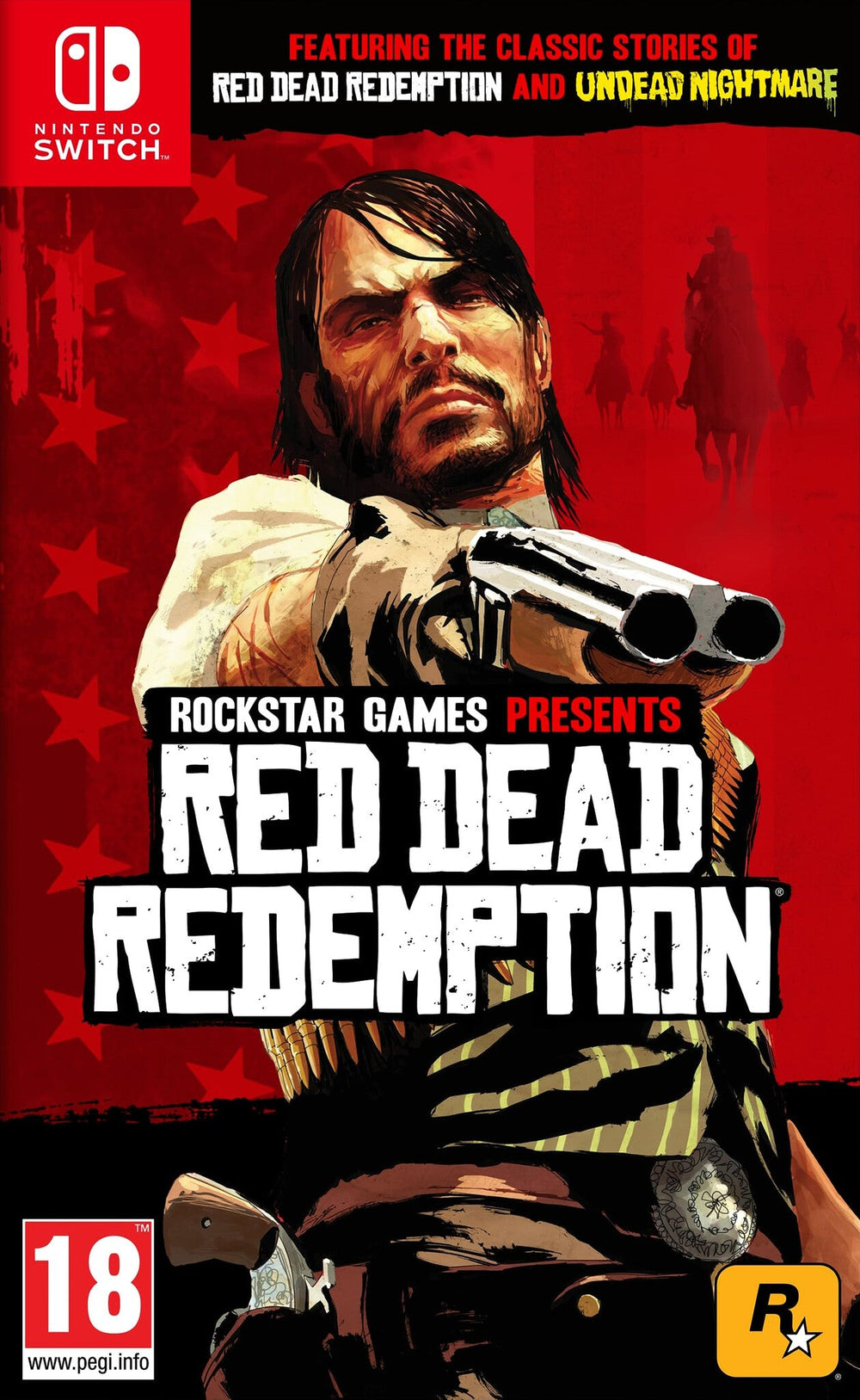 Nintendo Switch Game series: Red Dead Redemption. Language version: English. Game edition: Standard Game genre: Action. Developer: Double Eleven Studios Release date (DD/MM/YYYY): 13/10/2023. ESRB rating: M (Mature) PEGI rating: 18. Experience the epic western adventures that defined a generation.. When federal agents threaten his family, former outlaw John Marston is forced to hunt down the gang of criminals he once called friends. Experience Marston’s journey across the sprawling expanses of the American West and Mexico as he fights to bury his blood-stained past in the critically acclaimed predecessor to the 2018 blockbuster, Red Dead Redemption 2. Also included is Undead Nightmare, the iconic horror story that transforms the world of Red Dead Redemption into an apocalyptic fight for survival against a zombie horde.. Featuring the complete single-player experiences of both games, Red Dead Redemption also includes bonus content from the Game of the Year Edition and more.*. *Red Dead Redemption features the single-player experiences from both Red Dead Redemption and Undead Nightmare, plus bonus content from the Game of the Year Edition and more. Red Dead Redemption does not feature multiplayer content.. Features. Publisher. Nintendo. Multiplayer mode. No. USK rating. 18. PEGI rating. 18. Release date (DD/MM/YYYY). 13/10/2023. Developer. Double Eleven Studios. Media type. Cartridge. Distribution type. Physical media. Language version. English. ESRB rating. M (Mature). Game series. Red Dead Redemption. Game genre. Action. Platform. Nintendo Switch. Game edition. Standard. Weight & dimensions. Package weight. 52 g. Package height. 170 mm. Package depth. 11 mm. Package width. 105 mm. Weight. 1 g. Height. 30 mm. Depth. 30 mm. Width. 2 mm. Logistics data. Country of origin. Japan. Harmonized System (HS) code. 95045000. Red Dead Redemption - Nintendo Switch Trailer