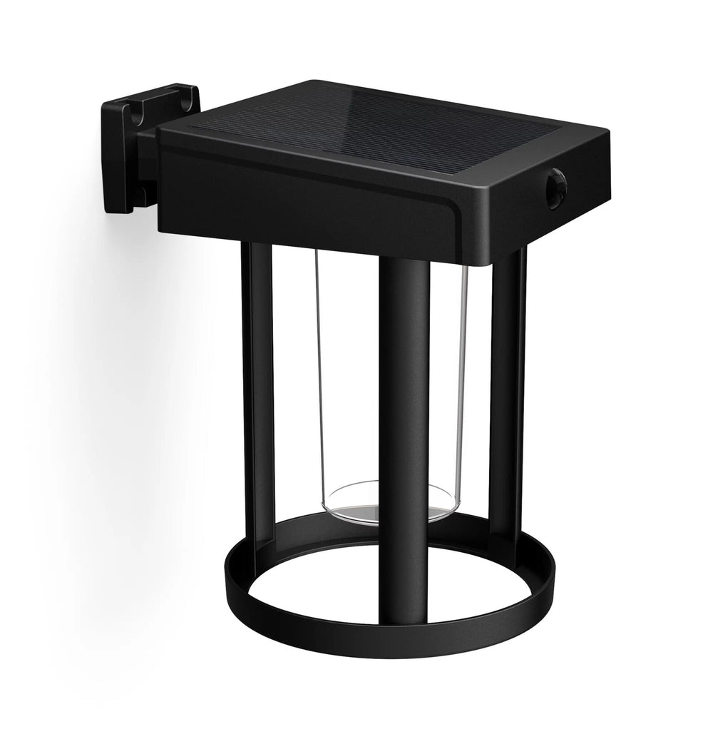 No wiring required. IP44 – weatherproof. Bright white light 3,000 K. Long lifetime up to 50,000 hours. Ultra-efficient solar. Dual-brightness light. Motion and dusk-to-dawn sensor integrated. Give your outdoor wall a heritage look, with the black Philips LED outdoor wall light. Its diffused, bright light is also ideal for lighting up your front entrance. Its retro design is a stylish way to enjoy. your outdoor moments.. Design. Lighting style. Contemporary. Suitable location. Garden. Integrated sensors. Day/night sensor, Motion sensor. Protection features. Corrosion resistant, Dust resistant. Light source replaceable. Yes. Suitable for outdoor areas. Facade, Garden, Patio. Protection class. III. International Protection (IP) code. IP44. Housing material. Plastic. Product colour. Black. Type. Outdoor wall lighting. Lamps. Eye comfort. No. Total luminous flux. 250 lm. Replacement bulb power (max). 1.4 W. Luminous flux. 250 lm. Color Rendering Index (CRI). 80. Colour temperature. 3000 K. Colour temperature (min). 3000 K. Colour temperature (max). 3000 K. Bulb lifetime. 50000 h. Bulb type. LED. Bulb(s) included. Yes. Number of bulbs. 1 bulb(s). Ergonomics. Dimmable. No. Power. AC input voltage. 4 V. Energy efficiency class. A. Solar panel voltage. 4 V. Battery voltage. 4 V. Power source type. Solar. Weight & dimensions. Weight. 480 g. Height. 205 mm. Depth. 190 mm. Length. 190 mm. Packaging data. Package net weight. 480 g. Package width. 150 mm. Quantity per pack. 1 pc(s). Packaging content. Centerpiece included. No. Other features. LED module warranty. 5 year(s). Weatherproof. Yes. Fixture dimmable. No. Adjustable spot head. No. Bi-directional light beams. No. Included bulb energy efficiency class (old). A. Technical details. Net weight. 480 g. leaflet
