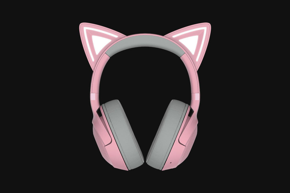 Kitty Ears and Earcups. Bluetooth 5.2 with Gaming Mode. Razer™ TriForce 40 mm Drivers. Performance. Country of origin. China. Game mode. Yes. Virtual surround. Yes. Backlight colour. Multicolour. Backlight. Yes. Control type. Buttons, Rotary. Control unit type. On-ear control unit. Volume control. Rotary. Product colour. Pink. Headset type. Binaural. Recommended usage. Gaming. Wearing style. Head-band. Product type. Headset. Ports & interfaces. Bluetooth version. 5.2. Bluetooth. Yes. Connectivity technology. Wireless. Headphones. Noise canceling. Yes. Driver type. TriForce. Driver unit. 4 cm. Headphone sensitivity. 92.5 dB. Impedance. 32 Ω. Headphone frequency. 20 - 20000 Hz. Ear coupling. Circumaural. Microphone. Microphone direction type. Omnidirectional. Microphone sensitivity. -42 dB. Microphone frequency. 100 - 10000 Hz. Microphone type. Built-in. Battery. Charging source. USB. Continuous audio playback time. 40 h. Battery type. Built-in battery. Battery operated. Yes. System requirements. Windows operating systems supported. Windows 10 x64, Windows 11 x64. Weight & dimensions. Weight. 350 g. Height. 210 mm. Depth. 189 mm. Width. 89 mm. Packaging data. Package weight. 750 g. Package height. 264 mm. Package depth. 212 mm. Package width. 105 mm. Packaging content. Quantity. 1. AC adapter included. No. Logistics data. Harmonized System (HS) code. 8518300090. Power. USB Type-C charging port. Yes. Supplier features. Battery life. 2400 min