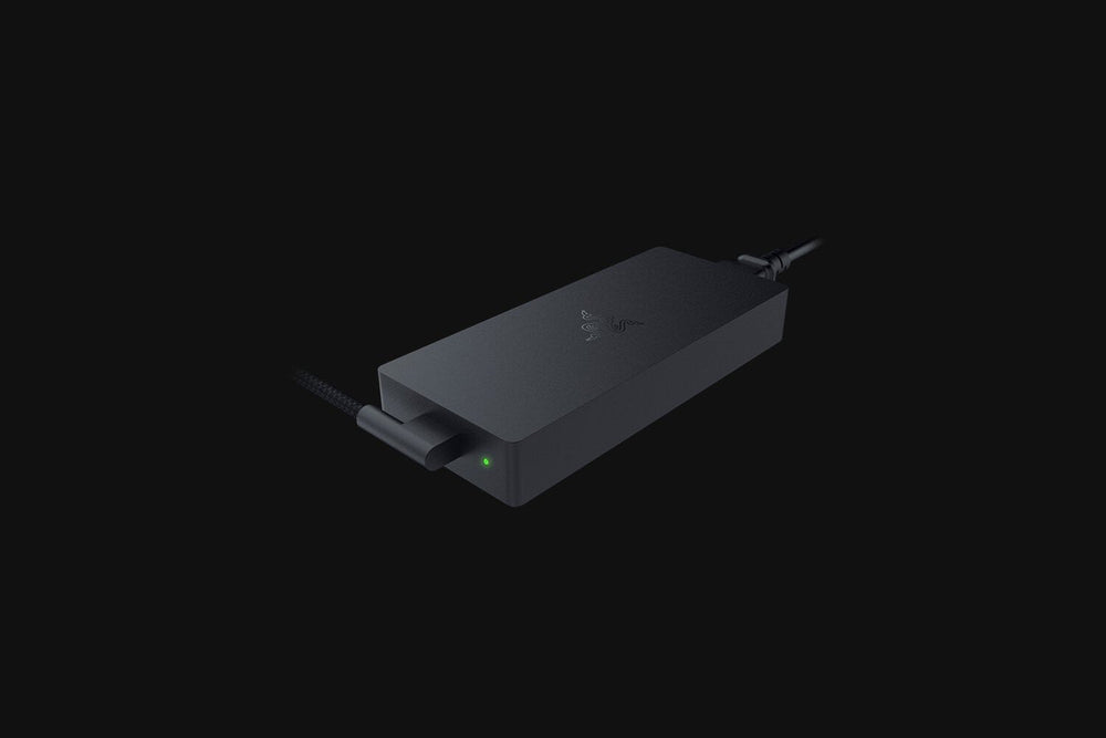 Next gen GaN technology. More compact than comparable high wattage chargers. Braided cable for long term durability. Features. Compatibility. Blade 17" GeForce RTX models (2022), Blade 15" GeForce RTX models (2022), Blade 14" models. Brand compatibility. Razer. Output current. 14.4 A. Output voltage. 19.5 V. Output power. 280 W. Input current. 3.6 A. Input frequency. 50 - 60 Hz. Input voltage. 100 - 240 V. Power supply type. Indoor. Purpose. Laptop. Design. Product colour. Black. Weight & dimensions. Weight. 810 g. Height. 24.5 mm. Depth. 163.5 mm. Width. 70 mm. Packaging content. Quantity per pack. 1 pc(s)