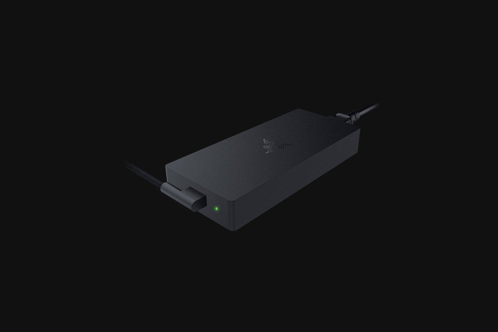 Next gen gallium nitride(GaN) technology. More compact than comparable high wattage chargers. Braided cable for long term durability. Features. Compatibility. Blade 16, Blade 18 GeForce RTX 4080 and 4090 models (2023). Brand compatibility. Razer. Output current. 16.92 A. Output voltage. 19.5 V. Output power. 330 W. Input current. 4.5 A. Input frequency. 50 - 60 Hz. Input voltage. 100 - 240 V. Power supply type. Indoor. Purpose. Laptop. Design. Product colour. Black. Weight & dimensions. Weight. 840 g. Height. 24.5 mm. Depth. 180 mm. Width. 75 mm. Packaging content. Quantity per pack. 1 pc(s)