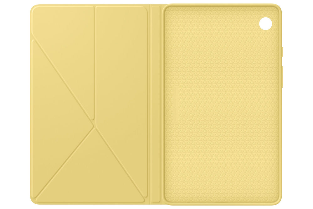 Folio Cover with landscape and portrait viewing experience & bumpers for shock protectionTwo ways to stand. Twice the freedom. Whether you're catching up on your favorite shows in landscape mode or tackling a productive day in portrait mode, the Book Cover ensures that your tablet adjusts to your needs. Embedded magnets make it easy to fold it into an origami-like stand in two different viewing angles.. Sturdy outside, safe inside. Take your tablet along with confidence, knowing it is wrapped in a protective cover designed to keep your device safe. The cover offers defense against minor bumps and unforeseen scratches, giving your tablet the care and protection it deserves.. Features. Protection features. Bump resistant, Scratch resistant. Stand mode. Yes. Built-in speaker(s). No. Compatibility. Galaxy Tab A9. Brand compatibility. Samsung. Product main colour. Blue. Case type. Folio. Maximum screen size. 22.1 cm (8.7"). Battery. Built-in battery. No. Weight & dimensions. Weight. 190 g. Height. 128.9 mm. Depth. 13.5 mm. Width. 214.2 mm. Packaging data. Quantity per pack. 1 pc(s)