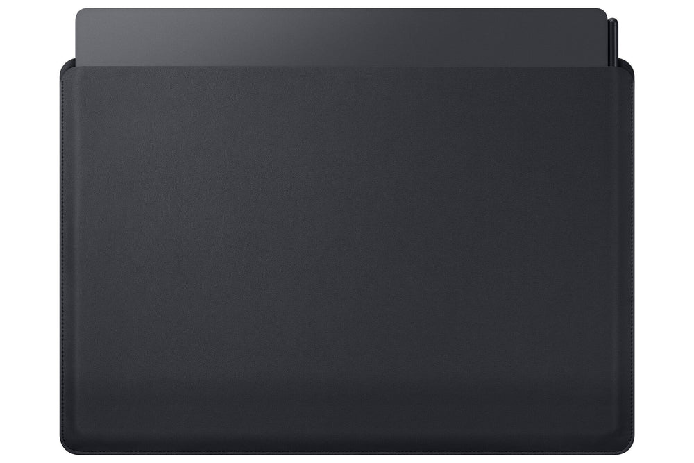 Pouch with dedicated S Pen holder made from 100% vegan leather and recycled suede inner liningSlim. Smooth. Protective.. Carry your Galaxy Book3 series laptop in this sleek, stylish slim pouch with streamlined design — taking up minimal space while protecting your device from scratches and scrapes.. Keep your S Pen in place. You can keep your S Pen hidden inside and always in one place, keeping it secure and easy to find.. Features. Pen holder. Yes. Compatibility. Galaxy Book3 Pro 16", Galaxy Book3 Pro 360, Galaxy Book3 Ultra. Brand compatibility. Samsung. Product main colour. Black. Material. Faux leather. Case type. Pouch case. Maximum screen size. 40.6 cm (16"). Weight & dimensions. Weight. 314.8 g. Height. 269 mm. Depth. 5.4 mm. Width. 388 mm