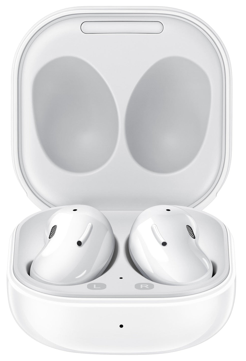 White Calls/Music In-ear Headset. True Wireless Stereo (TWS) Bluetooth 5.0. Intraaural In-ear monitors. Microphone type: Built-in. Built-in battery 60 mAh. Introducing Galaxy Buds Live. The newest shape of true wireless earbuds. The earbud designed to tune in to every moment. With an iconic shape and ergonomic design, a fit that lets in your natural surroundings, and a speaker optimized for a better experience. This is sound made for your ears.. Live & deep sound. Hear every sound come alive. Feel like you're in the front row, or part of something bigger. 12mm speakers with sound by AKG work together with Galaxy Buds Live's ergonomic design to deliver spacious sound, while the large driver and bass duct help emit deep bass with air flow that lets sound flow seamlessly.. Ergonomic. Made for your ears. Galaxy Buds Live sit softly inside the ear, giving you a fit for all-day comfort with less fatigue. Its ergonomic design is snug yet non-intrusive with two wing tip sizes for a better fit. So, commute to the office, go to a friend's house, and more without your buds leaving your ears.. Active Noise Cancellation. Turn down distractions. The first Active Noise Cancellation (ANC) for open type on Galaxy’s true wireless buds keeps the noise out, but lets the world in. It reduces background noises without missing what’s important, like voices and announcements, so you hear more of what you want to hear — all with just a long press to turn it on.. Charging. Power for even more playtime.. Charge in just a few minutes so you can get back into the groove. Five minutes gets you an hour, whether that's for your favorite playlist or the latest podcast. If you need a bit extra, you can even use your smartphone's power to give Galaxy Buds Live a charge while on the go.. Bixby voice wake-up. A smart assistant who listens back. Bixby voice wake-up is ready whenever you call. It wakes up to your voice, letting you control your phone without lifting a finger. Manage your calls, adjust the volume, or check weather while on the move. You talk, Bixby listens.. Pair with a PC for an easy way to work. Easily pair with your PC. Put Galaxy Buds Live in pairing mode near a PC and get your best work done. Use Windows 10 PC's Swift Pair for an easier, simpler way to connect the two.. Performance. Plug and Play. Yes. Control type. Touch. Volume control. Touch. Operating keys. Multi-key. Product colour. White. Headset type. Binaural. Recommended usage. Calls/Music. Wearing style. In-ear. Product type. Headset. Ports & interfaces. Bluetooth profiles. A2DP, AVRCP, HFP. Bluetooth version. 5.0. Bluetooth. Yes. USB connectivity. No. 3.5 mm connector. No. Connectivity technology. True Wireless Stereo (TWS). Headphones. Noise canceling type. Active. Noise canceling. Yes. Driver unit. 1.2 cm. Acoustic system. Open. Ear coupling. Intraaural. Intraaural headphones type. In-ear monitors. Microphone. Number of microphones. 3. Microphone type. Built-in. Battery. Wireless charging. Yes. Battery charge indicator. Yes. Battery recharge time. 1.5 h. Charging source. USB. Continuous audio playback time (with charging case). 21 h. Continuous audio playback time. 6 h. Battery capacity. 60 mAh. Battery type. Built-in battery. Battery operated. Yes. System requirements. Mobile operating systems supported. Android 5.0, Android 5.1, Android 6.0, Android 7.0, Android 7.1, Android 7.1.2, Android 8.0, Android 9.0, iOS 10.0, iOS 11.0, iOS 11.4, iOS 12, iOS 13. Weight & dimensions. Charging case weight. 42.2 g. Charging case dimensions (W x D x H). 50.2 x 27.8 x 50 mm. Weight. 5.6 g. Height. 14.9 mm. Depth. 16.5 mm. Width. 27.3 mm. Packaging data. Package type. Box. Packaging content. Cables included. USB Type-C. Charging case connector type. USB Type-C. Charging case type. Wired. Charging case capacity. 472 mAh. Charging case. Yes. Logistics data. Harmonized System (HS) code. 85183000. Supplier features. Battery life. 360 min. Recommended gender. Boy/Girl