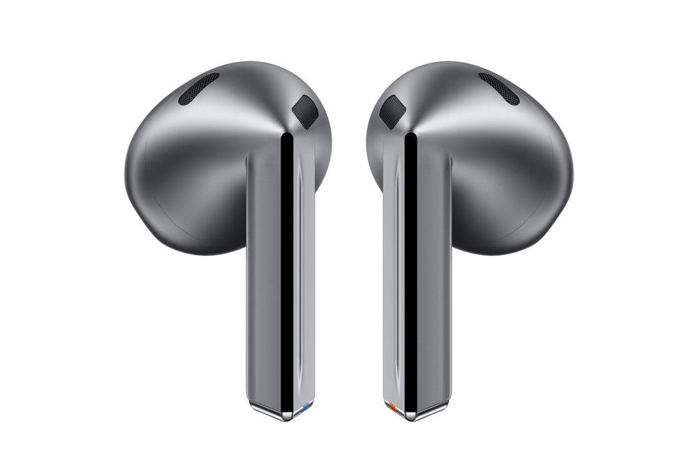 Ultimate Hi-Fi. All-new, open-type design. Adaptive EQ/ANC. Secure fit for sensational sound. Re-imagined design, engineered for incomparable sound. Feel the difference with our all-new, open-type earbuds with a snug, angled fit to seal in sound.. Ergonomically engineered for easy listening. Our new angular design has been meticulously crafted based on 3D ear data collected from a computational design tool to check for wearability. It's made to optimise sound and minimise ear canal pressure, making it ideal for day-to-day wear.. Change it up with just a touch. Leave your phone in your pocket and conveniently control your earbuds by using simple gestures. Even with a swift swipe, rest assured your Galaxy Buds3 stay securely in your ears.. Bring the beat in. Equipped with an new 11mm speaker with a 1.5x amp-enhanced diaphragm, step up your sound and go from dull to dynamic.. Hi-Fi sound that hits different. Retain ultra high quality audio from the recording studio to your Galaxy Buds3. The Samsung Seamless Codec compresses and encodes up to 24bit / 96kHz audio. Then, decodes on the Galaxy Buds3, maintaining the 24bit / 96kHz, high-fidelity sound so you can hear the intricate details, just as it was intended.. Galaxy AI makes music enjoyable for any ear. Delve into your personal soundscape with Galaxy AI-assisted Adaptive EQ/Adaptive ANC. Based on individual ear shape and wearing habits, our AI-boosted algorithm analyses sound detected through the inner and outer mics in real-time. Then, Galaxy AI optimises your listening experience by adjusting the sound to conform to your fit with pinpoint precision.. ANC lets you hear it clear. Take the guesswork out of sound setting with ANC. Whether you're enjoying the latest shows, on a call with your bestie or listening to your playlist, listen with the right adjustments wherever you go.. TV 360 Audio puts you front and centre. Dive into a spatial sound experience. 360 Audio is a feature that identifies the exact direction of the sound as you tilt your head, providing surround sound for a more vivid listening and viewing experience.. Swap devices without missing a beat through PC Auto Switch. PC Auto Switch on Galaxy Buds3 detects audio activity and transfers the connection to your favorite Samsung Galaxy devices, so you can work and play seamlessly.. Share your sound with those around you via Auracast. With Auracast broadcast technology, you can share your audio stream with an unlimited number of devices. Effortlessly transform your Samsung TV, Samsung Galaxy smartphone or tablet into a radio source to start engaging with others.1,10,11,12,13. Just say the command - done. Control your audio settings without needing to touch your phone. Simply say a command, such as "next song" or "volume up" and let Galaxy Buds3 do the rest.. Seek your serene sound space. Mindfulness comes with daily practice. At the press of a button, teleport to a worry-free world of your own with Samsung Health powered by Calm. Alleviate stress with peaceful melodies from nature, improve your focus with white noise or relax with ASMR-related for a happier, healthier you.. All in harmony. Keep your music and audio flowing, whenever and wherever you're going.14,15,16,17,18. . . . Performance. Gyroscope. Yes. Accelerometer. Yes. Backlight. Yes. International Protection (IP) code. IP57. Control type. Touch. Product colour. Silver. Headset type. Binaural. Recommended usage. Calls/Music. Wearing style. In-ear. Product type. Headset. Ports & interfaces. Bluetooth profiles. A2DP, AVRCP, HFP, PBP, TMAP. Bluetooth version. 5.4. Bluetooth. Yes. USB connector. USB Type-C. USB connectivity. Yes. Connectivity technology. True Wireless Stereo (TWS). Headphones. Noise canceling type. Active. Noise canceling. Yes. Driver type. Dynamic. Driver unit. 1.1 cm. Ear coupling. Intraaural. Microphone. MEMS (Micro-Electro-Mechanical System) microphone. Yes. Microphone type. Built-in. Battery. Wireless charging. Yes. Talk time (ANC on). 3.5 h. Talk time (ANC off). 4 h. Battery recharge time. 1.1 h. Continuous audio playback time (ANC off). 6 h. Continuous audio playback time (charging case/ANC off). 30 h. Battery capacity (charging case). 515 mAh. Battery recharge time (charging case). 1.45 h. Continuous audio playback time (charging case/ANC on). 24 h. Continuous audio playback time (ANC on). 5 h. Battery capacity. 48 mAh. Battery operated. Yes. Weight & dimensions. Charging case weight. 46.5 g. Charging case dimensions (W x D x H). 58.9 x 24.4 x 48.7 mm. Right earpiece weight. 4.7 g. Left earpiece weight. 4.7 g. Packaging content. Cables included. USB Type-C. Charging case. Yes