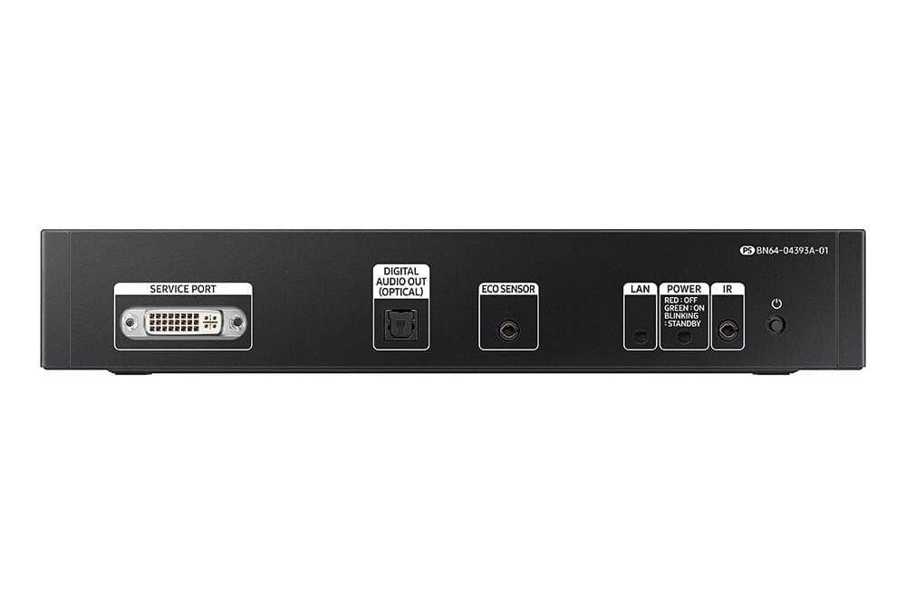 Graphics. Maximum resolution. 1920 x 1080 pixels. Network. Log function. Yes. Ethernet LAN. Yes. Ports & interfaces. Line-out. Yes. Serial interface type. RS-232C. DVI-I ports quantity. 1. HDMI ports quantity. 1. DisplayPorts quantity. 1. DC-in jack. Yes. USB 3.2 Gen 1 (3.1 Gen 1) Type-A ports quantity. 1. USB 2.0 ports quantity. 2. Ethernet LAN (RJ-45) ports. 1. Design. Product colour. Black. Rack mounting. Yes. Display. NOC supported. Yes. CMS/Diagnostics supported. Yes. Software. Operating system installed. Tizen 4.0. Power. Power consumption (typical). 21 W. Power consumption (max). 23.4 W. AC input frequency. 50 - 60 Hz. AC input voltage. 100 - 240 V. Operational conditions. Operating relative humidity (H-H). 10 - 80%. Operating temperature (T-T). 0 - 40 °C. Certificates. Certification. EMC Class A. Weight & dimensions. Weight. 1.1 kg. Height (without stand). 45 mm. Depth (without stand). 153.8 mm. Width (without stand). 253.6 mm. manual pdf