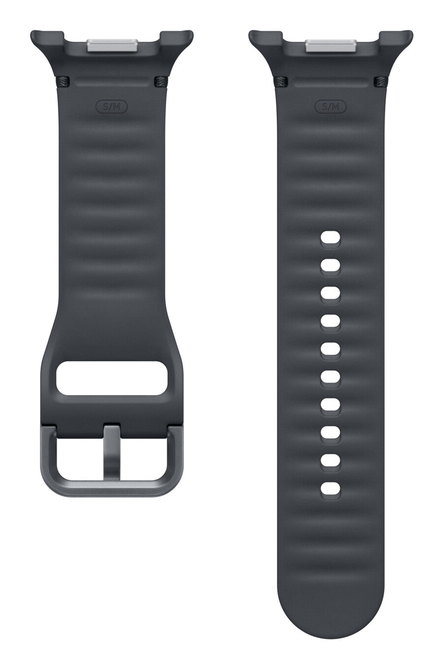 Compatible with Galaxy Watch7 SeriesMade to flex and move with you. Designed with soft rubber, the Sport Band offers a comfortable and flexible fit. Featuring breathable ripples on the inner band to enhance airflow and tone-on-tone stitching for a simple yet modern twist, it helps you feel fresh and at ease — so you can power through every workout.. Train harder with active level comfort. Stay on top of your daily fitness routine with the Sport Band. Whether you're running, swimming, cycling or doing Pilates, its design helps you stay light and comfortable through your day to day.. Switch smarter with Dynamic Lug System. Seamlessly change bands and personalize your look at the click of a button. With multiple bands to match any style, the intuitive Dynamic Lug System helps ensure a snug, stable fit, making swapping bands simple.. Features. Band size. S/M. Material. Rubber. Compatibility. Galaxy Watch8 | Watch8. Brand compatibility. Samsung. Product colour. Graphite. Compatible device type. Smartwatch. Product type. Band. Packaging content. Quantity per pack. 1 pc(s)