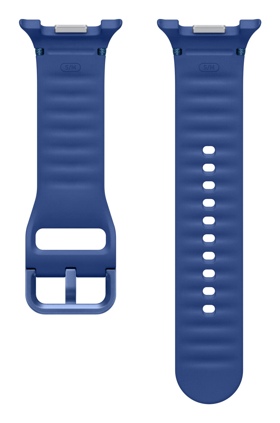 Compatible with Galaxy Watch7 SeriesMade to flex and move with you. Designed with soft rubber, the Sport Band offers a comfortable and flexible fit. Featuring breathable ripples on the inner band to enhance airflow and tone-on-tone stitching for a simple yet modern twist, it helps you feel fresh and at ease — so you can power through every workout.. Train harder with active level comfort. Stay on top of your daily fitness routine with the Sport Band. Whether you're running, swimming, cycling or doing Pilates, its design helps you stay light and comfortable through your day to day.. Switch smarter with Dynamic Lug System. Seamlessly change bands and personalize your look at the click of a button. With multiple bands to match any style, the intuitive Dynamic Lug System helps ensure a snug, stable fit, making swapping bands simple.. Features. Band size. S/M. Material. Rubber. Compatibility. Galaxy Watch8 | Watch8. Brand compatibility. Samsung. Product colour. Blue. Compatible device type. Smartwatch. Product type. Band. Packaging content. Quantity per pack. 1 pc(s)