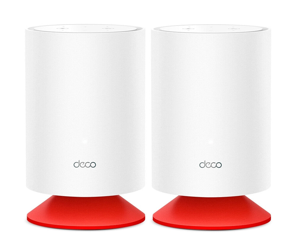 Super-fast WiFi 6 speeds: 1201 Mbps (5 GHz) + 574 Mbps (2.4 GHz). TP-Link Mesh Technology: Walk throughout your home and stay connected with the fastest possible speeds. Alexa Built-in: Embrace a smarter home with whole-home voice control via Amazon Alexa. Integrated Smart Speaker: Supports popular audio providers throughout your home with premium sound. TP-Link HomeShield: Provides reliable IoT protection, robust parental controls, and comprehensive security reports. Full Gigabit Ethernet: 2× Gigabit WAN/LAN Ethernet ports per Deco Voice unit provide warp-speed wired connections. Setup Made Easier Than Ever: The Deco app walks you through the setup step-by-step. Works with All Deco Models: Compatible with all Deco models to form a unified whole-home mesh network. Corner to Corner Wi-Fi 6. Corner to Corner Voice Control. AX1800 Mesh Wi-Fi 6 System with Smart Speaker. Meet the Superior Mesh Wi-Fi 6. The Deco whole-home mesh Wi-Fi 6 system is designed to deliver a huge boost in coverage, speed, and total capacity. Get the latest mesh Wi-Fi 6 to enjoy a future-proof network that loads faster and connects all of your devices.. Amazon Alexa Built-in. With Alexa built in, Deco Voice transforms your smart home. Manage your smart home devices, get today’s weather, make changes to your schedule, and queue your favorite playlists. All you have to do is ask Alexa.. Corner to Corner Acoustic Experiences. A powerful acoustic solution delivers premium sound throughout your home. Stream audio through Amazon Music, Spotify, Pandora, Tune in, and other platforms, cast your favorite songs or podcasts anywhere in your home.. All Decos Work Together. Deco Voice X20 is compatible with every other Deco model to form a unified mesh network.. Expand mesh Wi-Fi coverage anytime by simply adding more Decos.. Design. Reset button. Yes. Antennas quantity. 2. Antenna type. Internal. LED indicators. Power. Product colour. White. Wireless LAN features. Apps supported. TP-Link Deco. Dynamic DNS (DDNS). Yes. Guest access. Yes. IGMP proxy. Yes. IGMP snooping. Yes. Tagged VLAN. Yes. Dynamic IP. Yes. Static IP. Yes. Point-to-point protocol over Ethernet (PPPoE). Yes. Number of guest networks (2.4 GHz). 1. Security algorithms. WPA, WPA2-PSK, WPA3. Number of guest networks (5 GHz). 1. Networking standards. IEEE 802.11a, IEEE 802.11ac, IEEE 802.11ax, IEEE 802.11b, IEEE 802.11g, IEEE 802.11k, IEEE 802.11n, IEEE 802.11r, IEEE 802.11v. WLAN data transfer rate (second band). 1201 Mbit/s. WLAN data transfer rate (first band). 574 Mbit/s. Wi-Fi standards. 802.11a, 802.11b, 802.11g, Wi-Fi 4 (802.11n), Wi-Fi 5 (802.11ac), Wi-Fi 6 (802.11ax). Top Wi-Fi standard. Wi-Fi 6 (802.11ax). Wi-Fi band. Dual-band (2.4 GHz / 5 GHz). Features. Operating modes. Router, Access Point. MIMO. Yes. MU-MIMO technology. Yes. Supported WAN type. Dynamic IPStatic IPPPPoEPPTPL2TP. Firmware upgradeable via. Network. Parental control. Yes. DHCP server. Yes. NAT functionality. Port ForwardingUPnP. BeamForming. Yes. Port forwarding. Yes. Virtual assistant. Amazon Alexa. Speaker power. 5 W. Built-in speaker(s). Yes. Built-in microphone. Yes. Processor cores. 4. Processor frequency. 1.5 GHz. Built-in processor. Yes. Ports & interfaces. DC-in jack. Yes. Ethernet LAN (RJ-45) ports. 2. Power. AC adapter output current. 1.5 A. AC adapter output voltage. 12 V. AC adapter input current. 0.6 A. AC input frequency. 50/60 Hz. AC input voltage. 100 - 240 V. Certificates. Certification. CE, EAC, FCC, IC, RoHS, RCM. Operational conditions. Storage relative humidity (H-H). 5 - 90%. Operating relative humidity (H-H). 10 - 90%. Storage temperature (T-T). -40 - 60 °C. Operating temperature (T-T). 0 - 40 °C. Weight & dimensions. Height. 170 mm. Depth. 105 mm. Width. 105 mm. Packaging content. Ethernet cable. Yes. Number of units included. 2 pc(s). AC adapter included. Yes. Number of products included. 2 pc(s). Logistics data. Harmonized System (HS) code. 85171800. leaflet. manual pdf