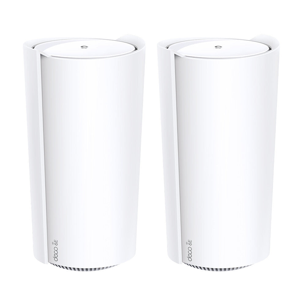 AXE11000 Tri-Band WiFi – 4804 Mbps (6 GHz) + 4804 Mbps (5 GHz) + 1148 Mbps (2.4 GHz). Works on the 6 GHz Band – Minimizes congestion with greenfield spectrum, delivering robust high-speed connections. 16-Stream WiFi – Simultaneous data transmissions with 16 streams. Multi-Gig 10 Gbps Wired Network – 1× 10 Gbps port + 2× Gigabit ports. Boosted Seamless Coverage — Mesh WiFi coverage up to 6,500 ft2 (2-pack) and 3,300 ft2 (1-pack). Seamless AI-Driven Mesh – Intelligently learns your network environment to provide the ideal WiFi unique to your home. TP-Link HomeShield – Provides comprehensive network protection, robust parental controls, and real-time IoT security. Universal Compatibility – Backward compatible with all WiFi generations and works with any internet service provider (ISP) and modem. Setup Made Easier Than Ever – The Deco app walks you through setup step-by-step. Fast. Smart. Powerful. Everywhere.. AXE11000 Tri-Band Whole Home Mesh WiFi 6E System. Upgrade Your WiFi to 6E. WiFi 6E utilizes the capabilities of 6 GHz to enable high-bandwidth applications that require faster data throughput such as high-definition video streaming and virtual reality, as well as lower latency connectivity for online gaming applications.. Tri-Band, Beyond Fast. Lag-free entertainment, non-stop steaming.. - 4804 Mbps on 6 GHz band. - 4804 Mbps on 5 GHz band. - 1148 Mbps on 2.4 GHz band. Attention to Every Detail. Independent R&D and in-house manufacturing ensure a high standard for all of our products.. Whole Home Coverage,. The Real Thing. All Deco units work together, simply add Deco units for more coverage.. Best WiFi For Your Unique Home. Deco fits any type of your house, and creates the ideal network throughout your home.. Designed for More Devices. No more dragging down performance in traffic-dense environments.. Intelligent Networking for a Smarter Home. Deco uses its custom algorithms to automate the connections on your network, ensuring the strongest possible signals at all times.. Seamless Roaming with One WiFi Name. TP-Link Mesh means Deco units work together to form one unified network. Your phone or tablet automatically connects to the fastest Deco as you move through your home, creating a truly seamless WiFi experience.. Protect Your Network and Everything on It. Network Protection. Detect cyber threats to keep your privacy and connected devices well protected.. - Real-Time IoT Protection. - Malicious Site Blocker. - Intrusion Prevention. - Home Network Scanner. Robust Parental Controls. Manage online time and block inappropriate content to keep families healthy online.. - User Profile by Age. - Content Filter. - Bedtime. - Time Rewards. Quality of Service (QoS). Prioritize your bandwidth needs to get a faster networking experience.. - Device Priority. Comprehensive Reports. Gain full statistics and insights to help you know your home network better.. - Internet User Overview. - Online Time Analysis. - Browser History Analysis. - End Device Statistics. Simple. Easy. Yet Powerful.. Setup and manage your network anytime and anywhere on the friendly TP-Link Deco app. In just three easy steps your entire home can be blanketed in strong and reliable WiFi.. Easy Management. Manage your WiFi at home or away on the Deco app. See every connected device, prioritize your own, and set up a guest network.. Voice Control. Use an Amazon Alexa or Google Assistant-enabled device to control Deco XE200 with just your voice.. All Decos Work Together. Deco XE200 is compatible with every other Deco model to form a Mesh network. Expand Mesh WiFi coverage anytime by adding more Decos.. Design. Maximum coverage. 600 m². Antenna type. Internal. Product type. Mesh system. Product colour. White. Wireless LAN features. VPN support. CE, FCC, RoHS. Apps supported. TP-Link Deco. Dynamic DNS (DDNS). Yes. Guest access. Yes. IGMP proxy. Yes. Tagged VLAN. Yes. Dynamic IP. Yes. Static IP. Yes. Point-to-point protocol over Ethernet (PPPoE). Yes. Number of guest networks (2.4 GHz). 1. Security algorithms. WPA, WPA2, WPA3. Number of guest networks (5 GHz). 1. Networking standards. IEEE 802.11a, IEEE 802.11ac, IEEE 802.11ax, IEEE 802.11b, IEEE 802.11g, IEEE 802.11n. WLAN data transfer rate (third band). 1148 Mbit/s. WLAN data transfer rate (second band). 4804 Mbit/s. WLAN data transfer rate (first band). 4804 Mbit/s. Wi-Fi standards. Wi-Fi 6E (802.11ax). Top Wi-Fi standard. Wi-Fi 6E (802.11ax). Wi-Fi band. Tri-band (2.4 GHz / 5 GHz / 6 GHz). Features. MIMO. Yes. MU-MIMO technology. Yes. Parental control. Yes. Parental control features. Bedtime, Family time, Pause the Internet, Time rewards, Weekly/monthly reports. Works with Amazon Alexa. Yes. DHCP client. Yes. DHCP server. Yes. Universal Plug and Play (UPnP). Yes. BeamForming. Yes. Firewall security. SPI Firewall. Port forwarding. Yes. Quality of Service (QoS) support. Yes. Cloud services supported. TP-Link ID. Ports & interfaces. Ethernet LAN (RJ-45) ports. 1. Power. AC adapter output voltage. 12 V. AC input frequency. 50/60 Hz. AC input voltage. 100 - 240 V. Certificates. Certification. CE, FCC, RoHS. Operational conditions. Storage relative humidity (H-H). 5 - 90%. Operating relative humidity (H-H). 10 - 90%. Storage temperature (T-T). -40 - 60 °C. Operating temperature (T-T). 0 - 40 °C. Weight & dimensions. Height. 241 mm. Depth. 123.5 mm. Width. 130 mm. Packaging content. Ethernet cable. Yes. Number of products included. 2 pc(s). leaflet. Deco 3.0 User Guide. User Guide Deco XE200