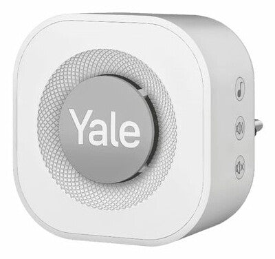Audible Doorbell alerts. Plug-in Installation. Add up to 6 Chimes throughout your home. Works with the Yale Smart Video Doorbell. 7 different sounds. Adjustable volume. Mute button. 2W speaker. Enhance your Smart Video Doorbell experience with the versatile Yale Doorbell Chime. Connect multiple chimes to a single Yale Smart Video Doorbell, granting you the freedom to choose from 7 distinct and captivating Yale sounds.. Works with the Yale Smart Video Doorbell Camera: Designed to seamlessly work with your existing Yale Smart Video Doorbell, the Doorbell Chime offers improved convenience and added flexibility.. Elevated doorbell experience. The Yale Doorbell Chime enhances your Smart Video Doorbell experience and ensures you never miss a visitor or delivery, regardless of where you are in your home.. Enhanced flexibility and coverage. Connect multiple chimes to a single Yale Smart Video Doorbell, expanding coverage across your home.. Customisable audio and volume. Choose from 7 distinct Yale sounds to match your personal style - and adjust the volume to suit your surroundings. Mute the chime with a single button press when you want peace and quiet.. Design. On/off switch. Yes. Indication light. Yes. Product colour. Grey, White. Features. Built-in speaker(s). Yes. Plug and Play. Yes. Do not disturb function. Yes. Adjustable volume. Yes. Volume control. Yes. Number of sounds. 7. Frequency. 433 MHz. Power. AC input frequency. 50 - 60 Hz. Input voltage. 100 - 240 V. Power source type. AC. Logistics data. Country of origin. China. Weight & dimensions. Weight. 53 g. Height. 64 mm. Depth. 37 mm. Width. 64 mm. Packaging data. Package weight. 90 g. Package height. 144 mm. Package depth. 66 mm. Package width. 112 mm. Packaging content. Quantity. 1