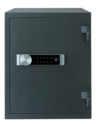 - Up to 1 hour fire protection for documents. - Digital lock with touchpad interface. - Epoxy sealed shell of galvanised steel gives double rust protection. - High security electronic lock (over 1 billion combinations). - Programmable one-time user code - ideal for visiting guests who may need to use the safe for a short period. - Back end bolts secure the hinges from attack. - Tested & accredited to Swedish & Korean standards. - Keypad illuminates when touched. - Re-settable 3 - 12 digit user code. - Programmable one-time user code - ideal for visiting guests who may need to use the safe for a short period. - Privacy number input - real code followed or preceded by random numbers opens the lock. Assists if you suspect your code is being observed by an onlooker. - Silent input - code can be entered without noise or light. - Time lock (if wrong code entered) - can be set from 3 to 9 minutes (factory set 3 minutes). - Lock-down period can be set from 1 to 48 hours. Safe can be shut down and cannot be activated for a given period.. - Ideal if you are away and have other people entering property. Features. Lock type. Combination lock, Flat key. Product colour. Black. Material. Metal. Weight & dimensions. Height. 522 mm. Width. 404 mm